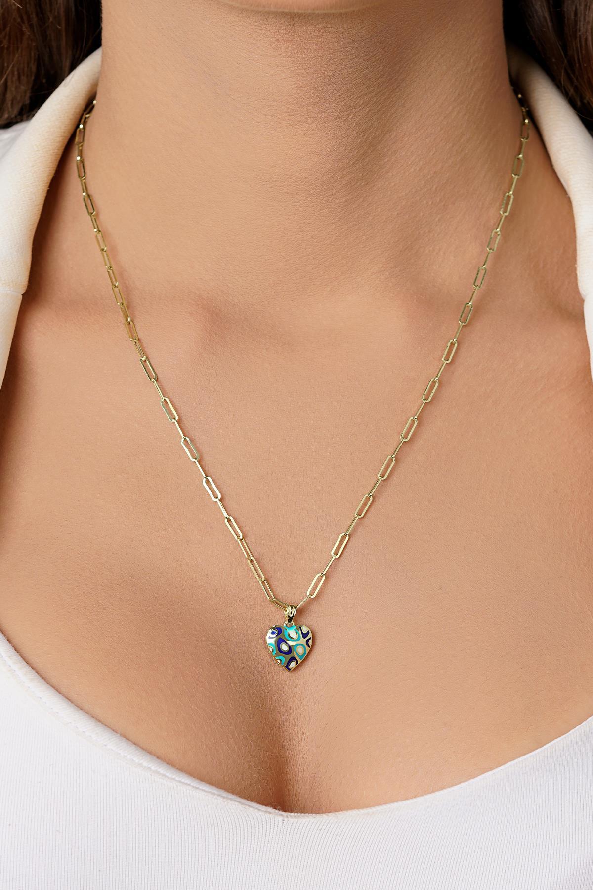 14 Ayar Altın Ataç Zincirli Renkli Kalp Kolye