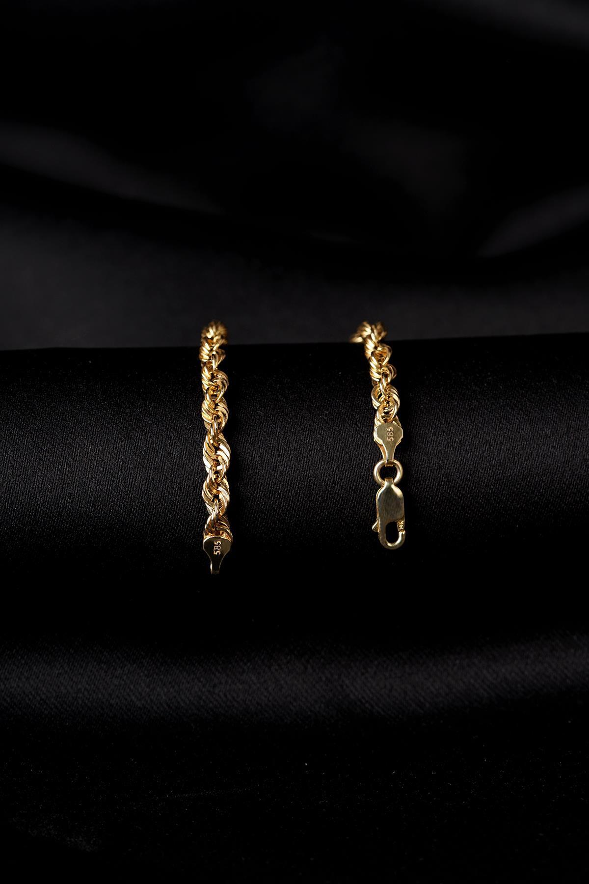 14 Ayar Altın Burgu Halat Zincir Erkek Bileklik 4.40 mm