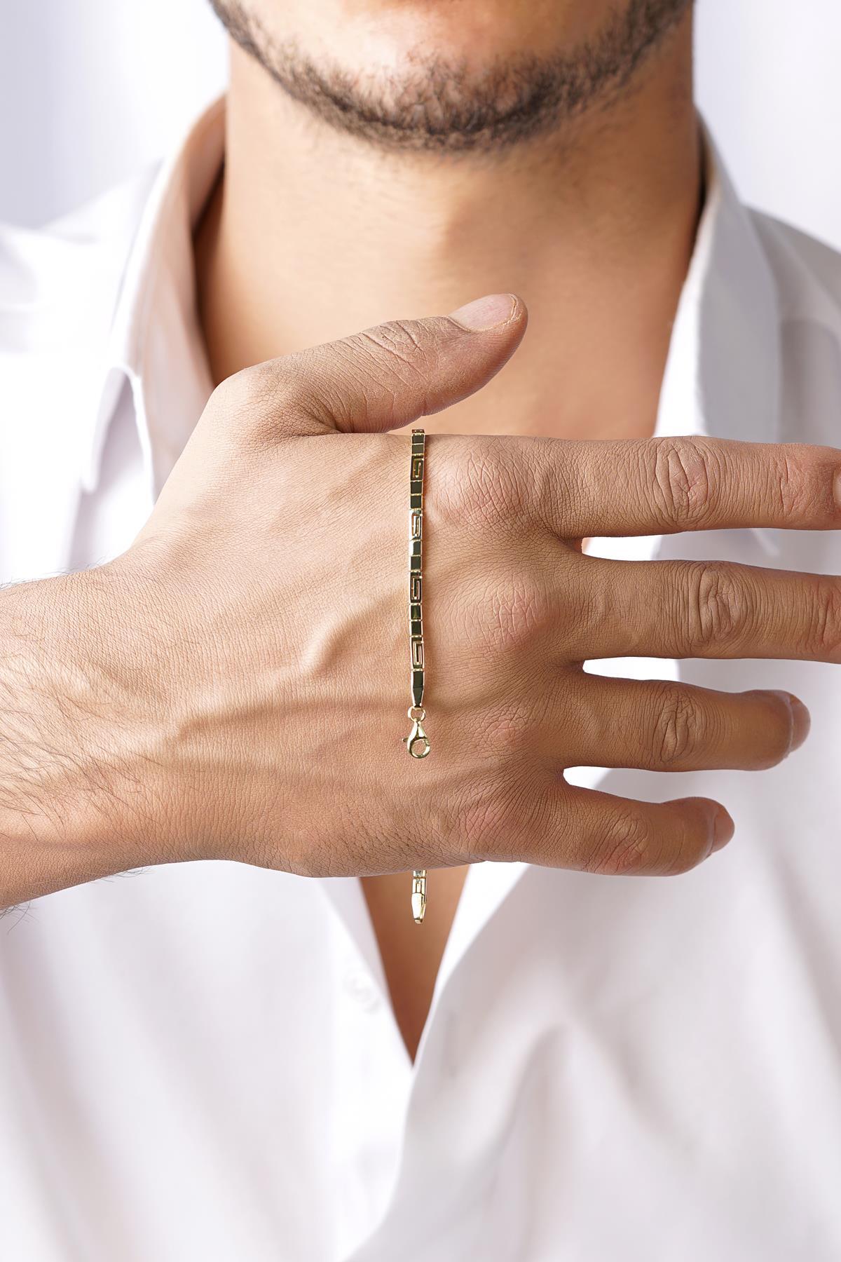 14 Ayar Altın Greek Desenli Erkek Bileklik