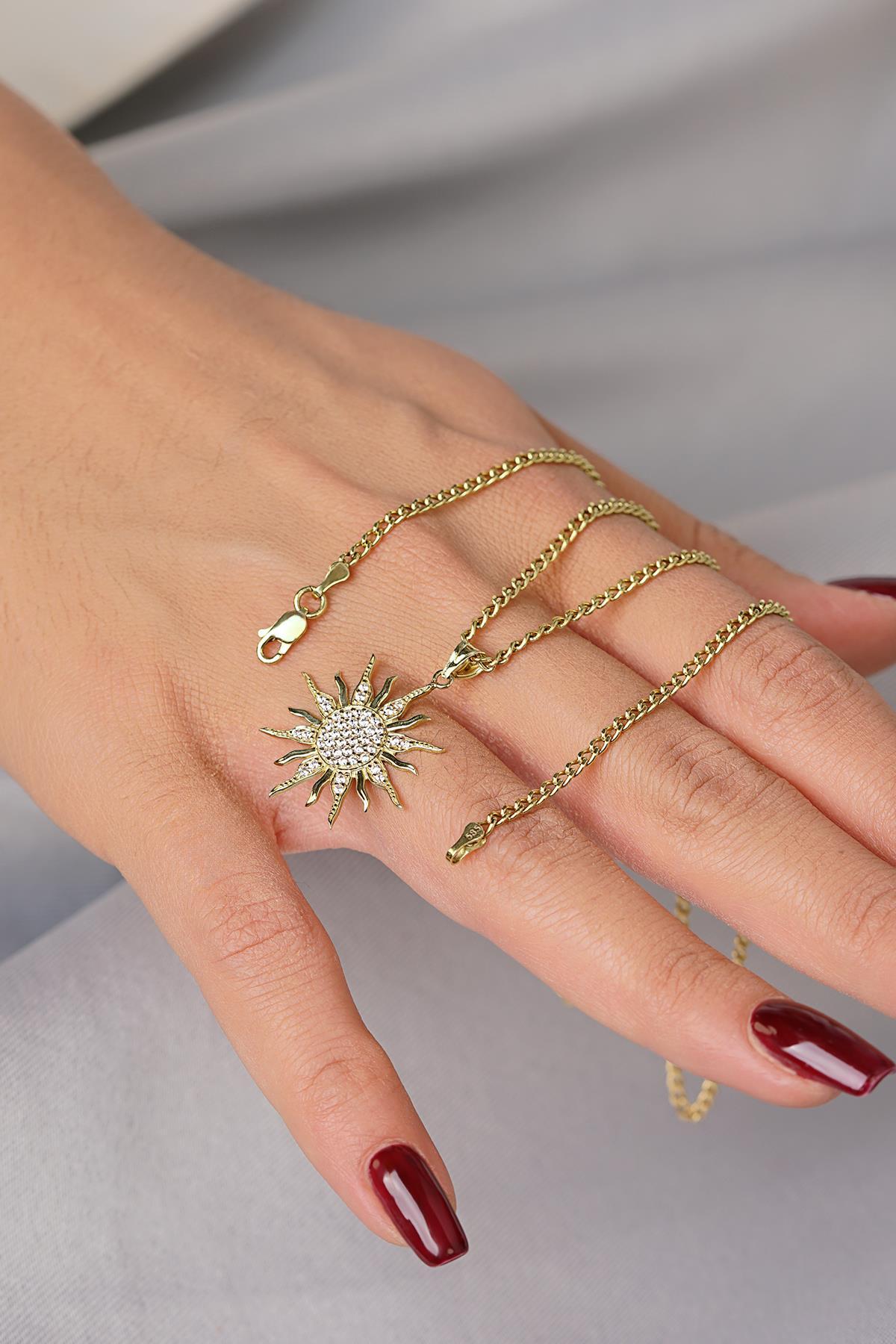 14 Ayar Altın Gurmet Zincirli Güneş Kolye
