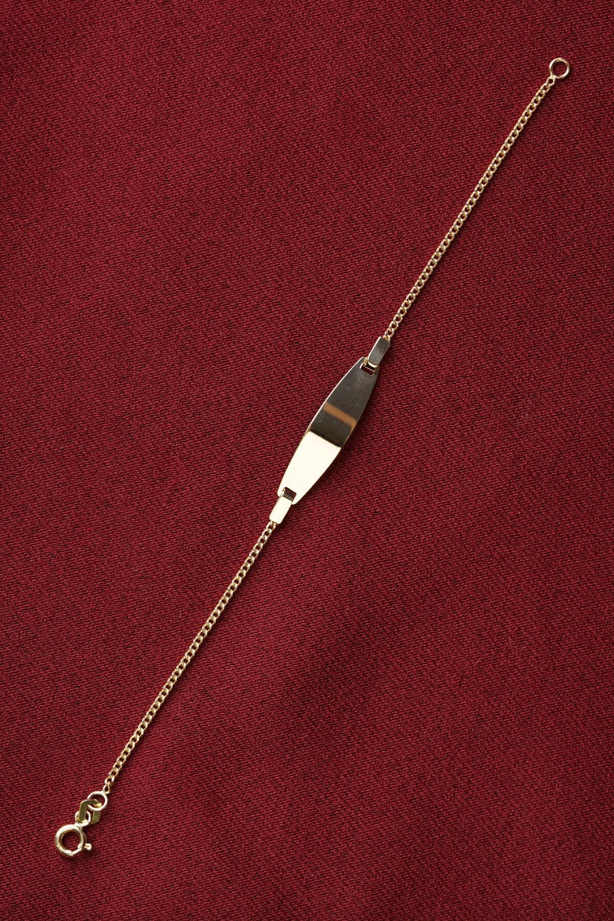 14 Ayar Altın Gurmet Zincirli Oval Plaka Bebek Çocuk Künyesi