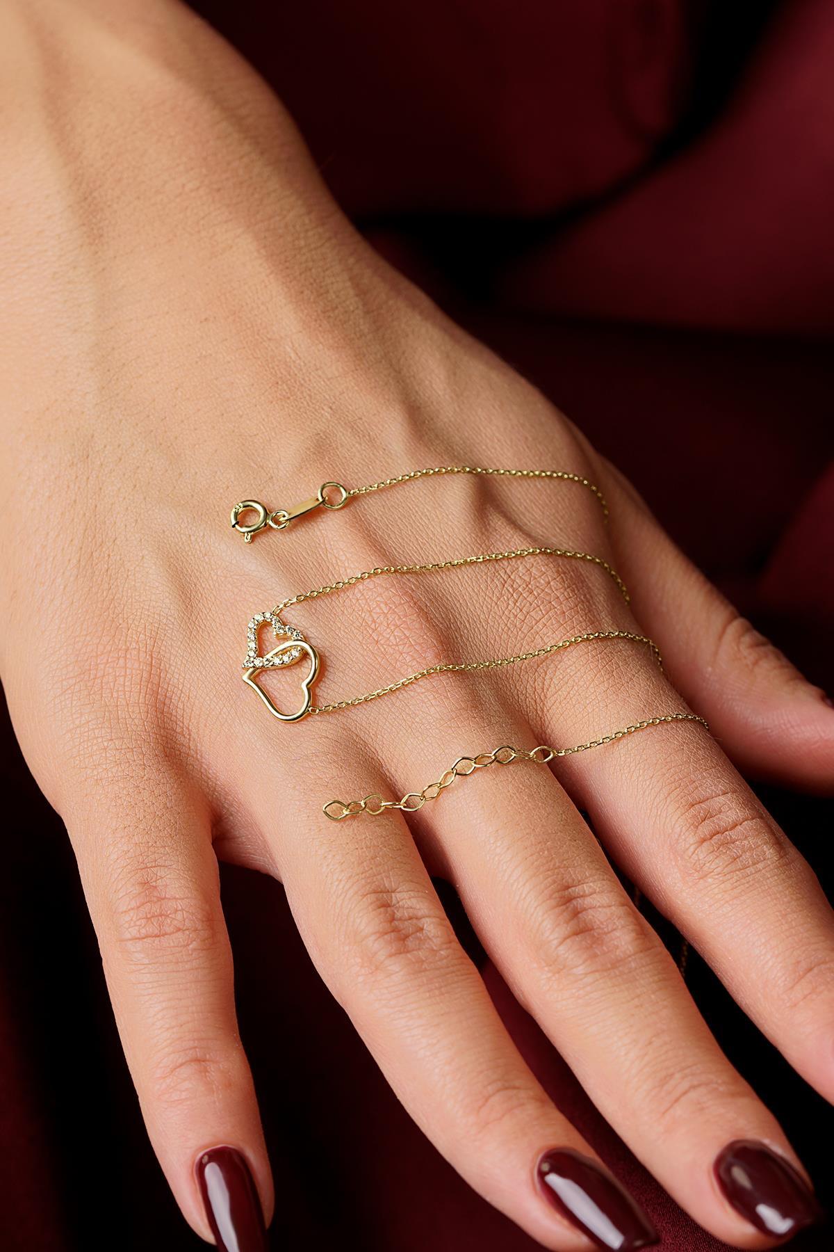 14 Ayar Altın İç İçe Kalpler Kolye
