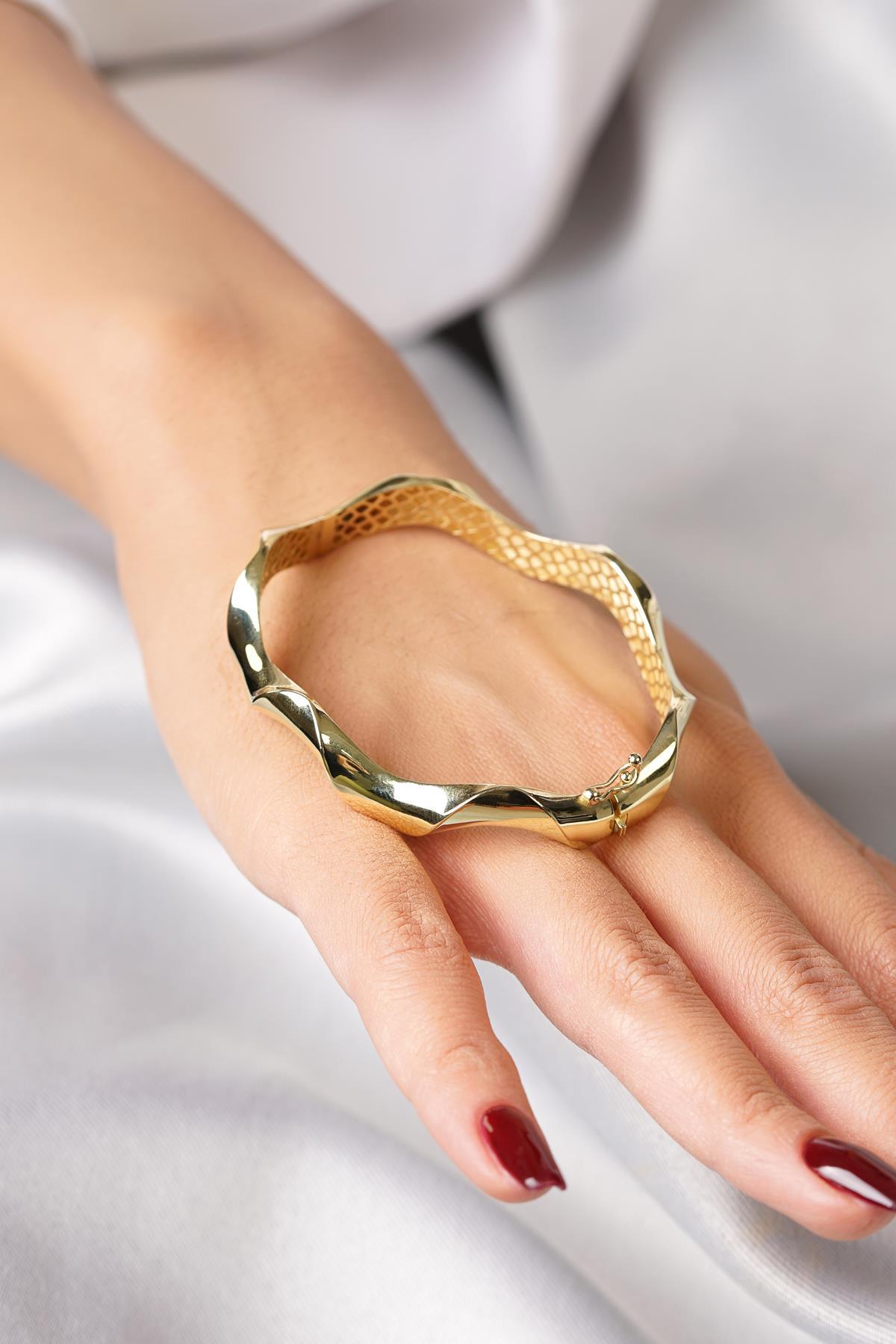 14 Ayar Altın Kalın Bombeler Kelepçe