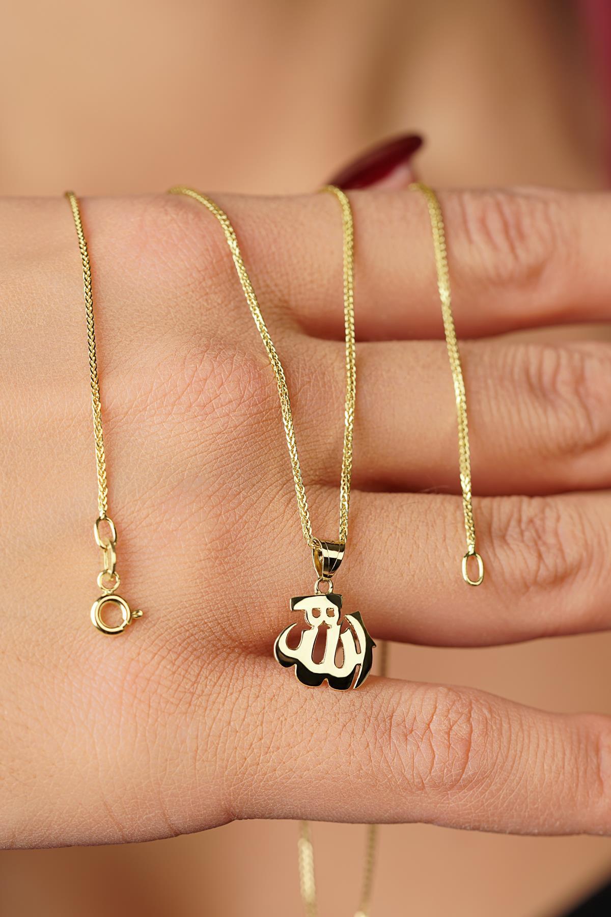 14 Ayar Altın İpek Zincir Allah Yazılı Kolye