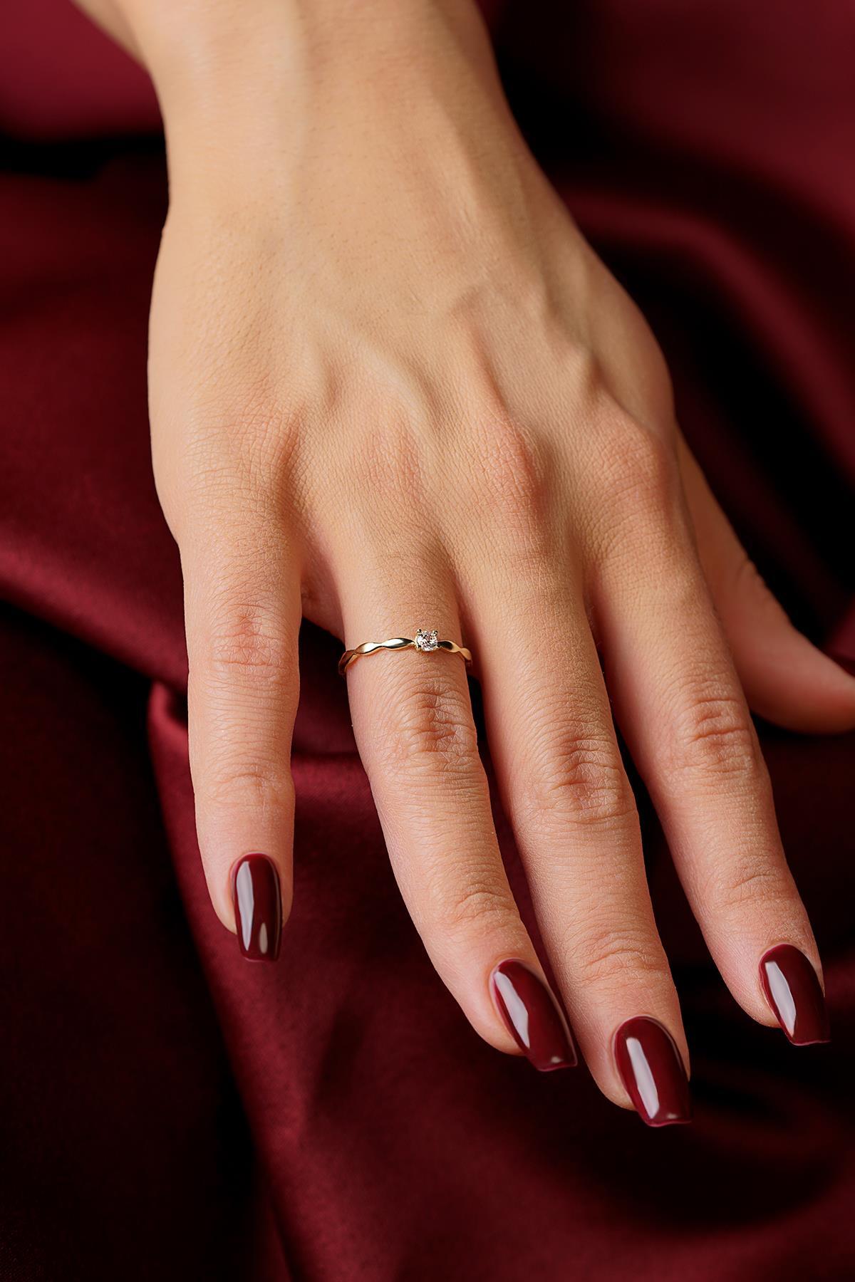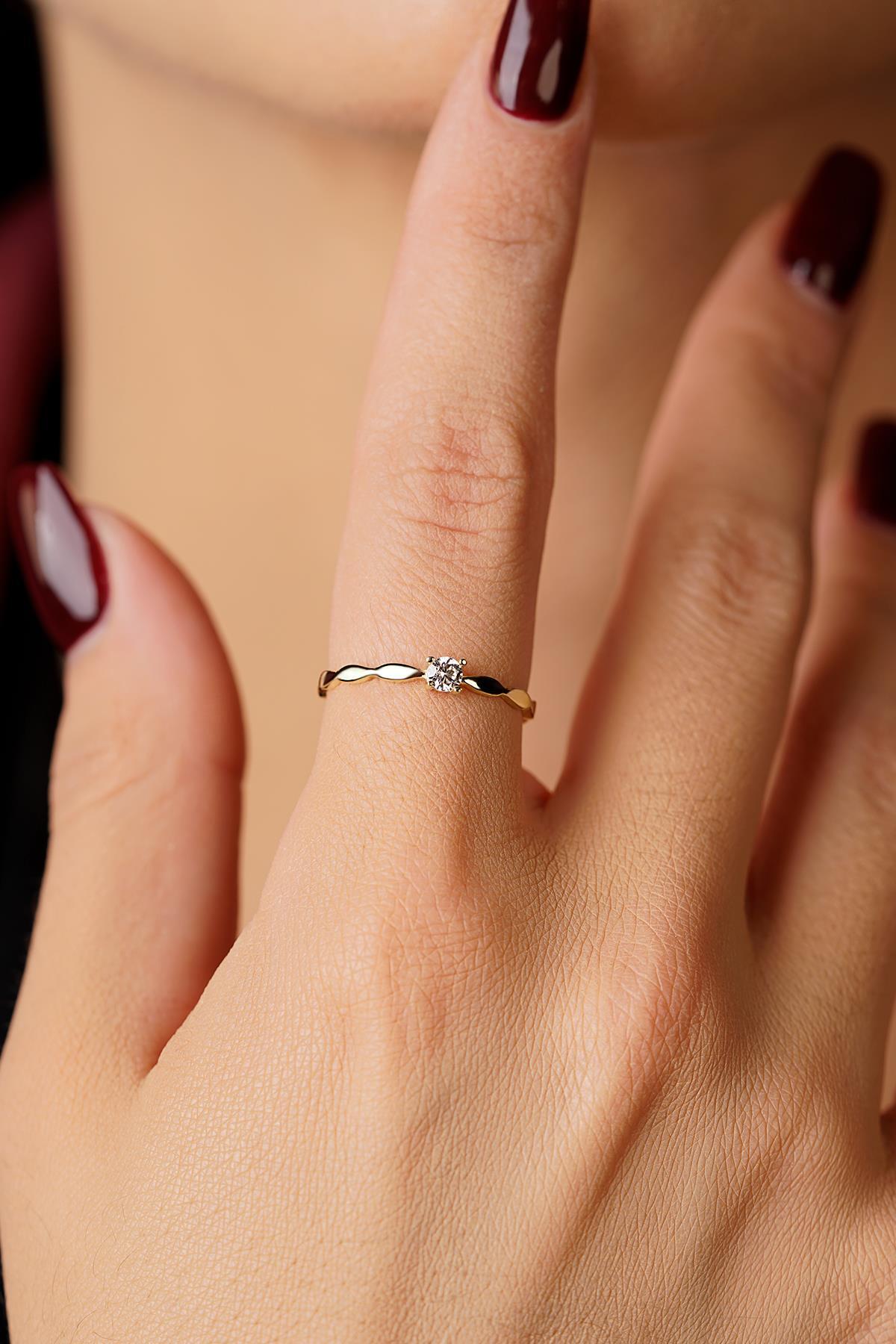 14 Ayar Altın Işıltılı Tek Taş Yüzük