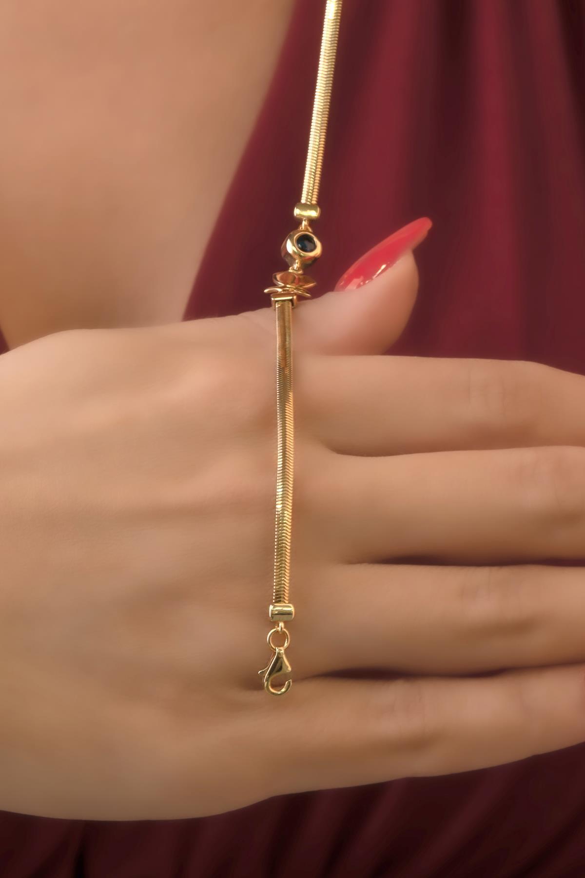 14 Ayar Altın Kelebek Ve Göz Detaylı İtalyan Balıksırtı Bileklik