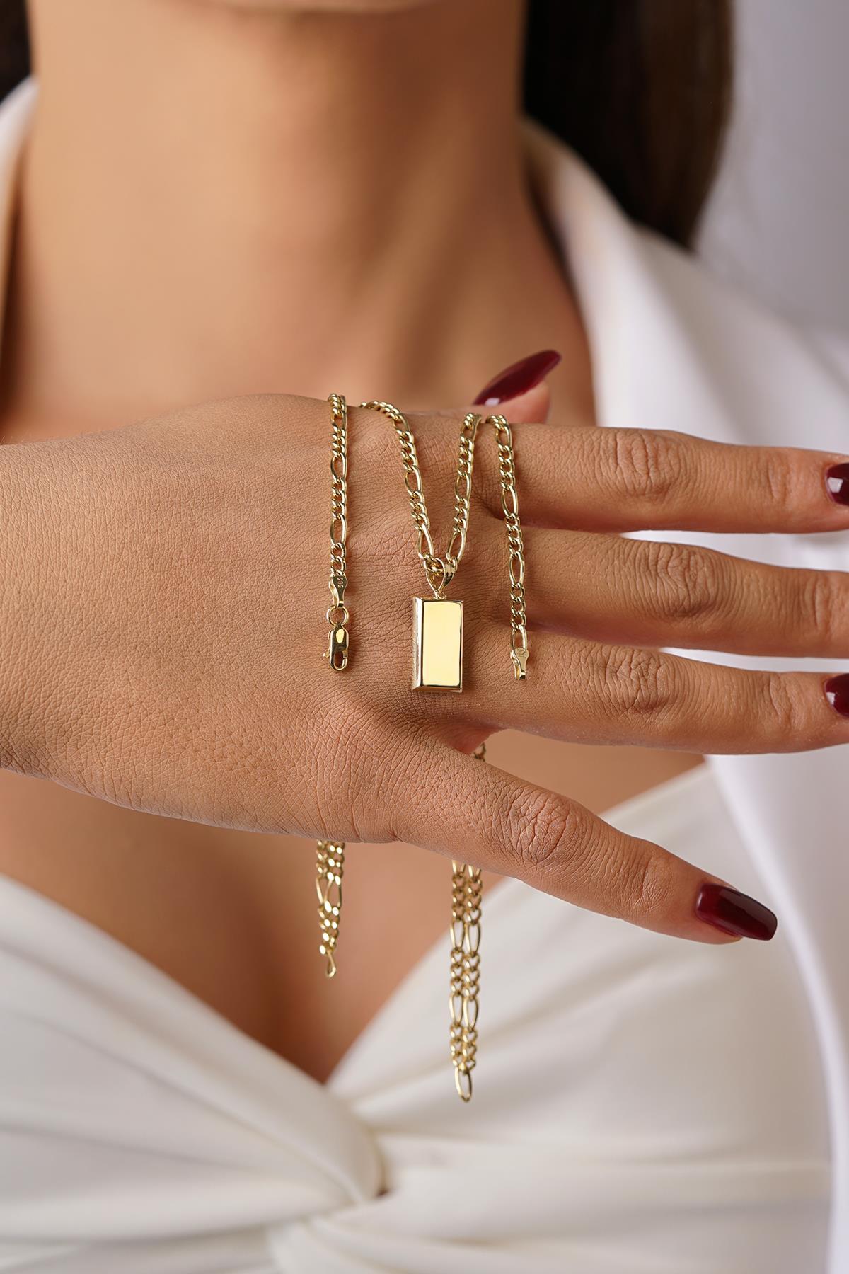 14 Ayar Altın Mini Külçeli Figaro Zincir Kolye