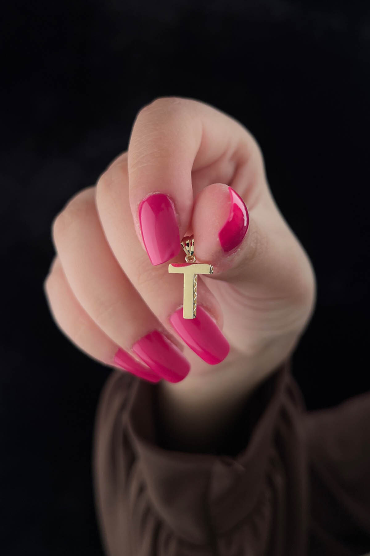 14 Ayar Altın Mini Shine Kolye Ucu T Harfi