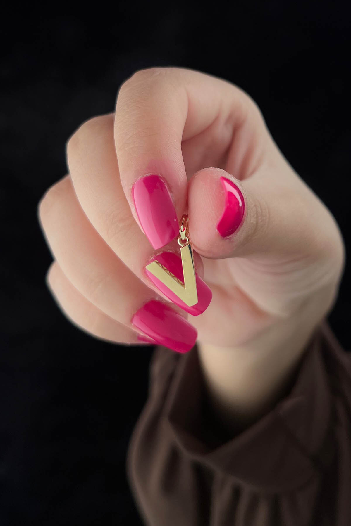 14 Ayar Altın Mini Shine Kolye Ucu V Harfi