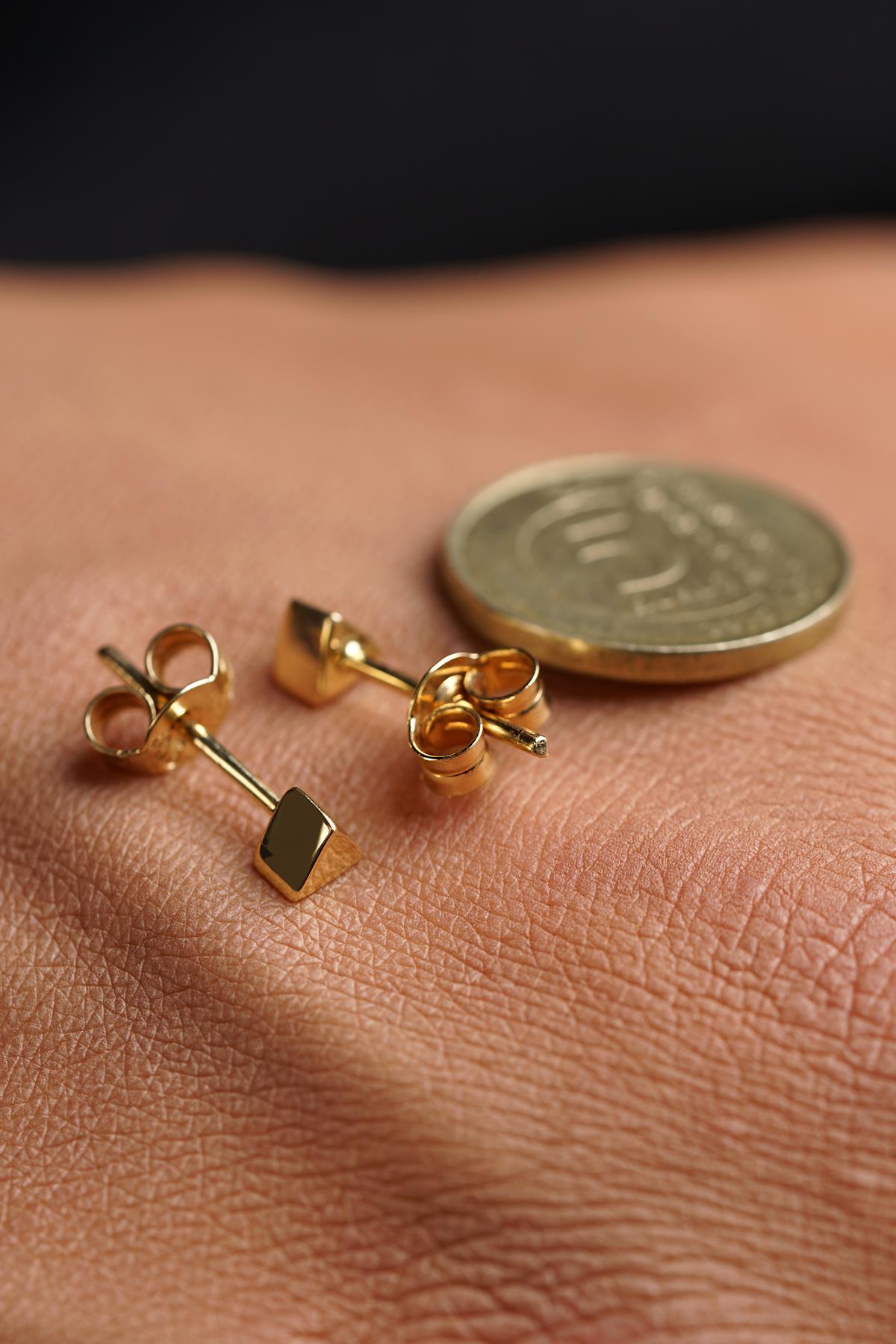 14 Ayar Altın Mini Üçgen Küpe Erkek
