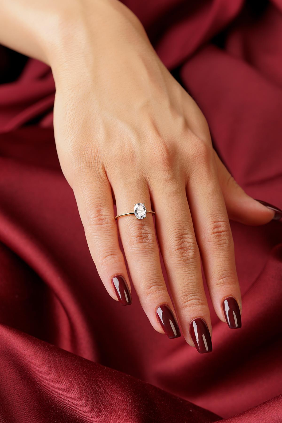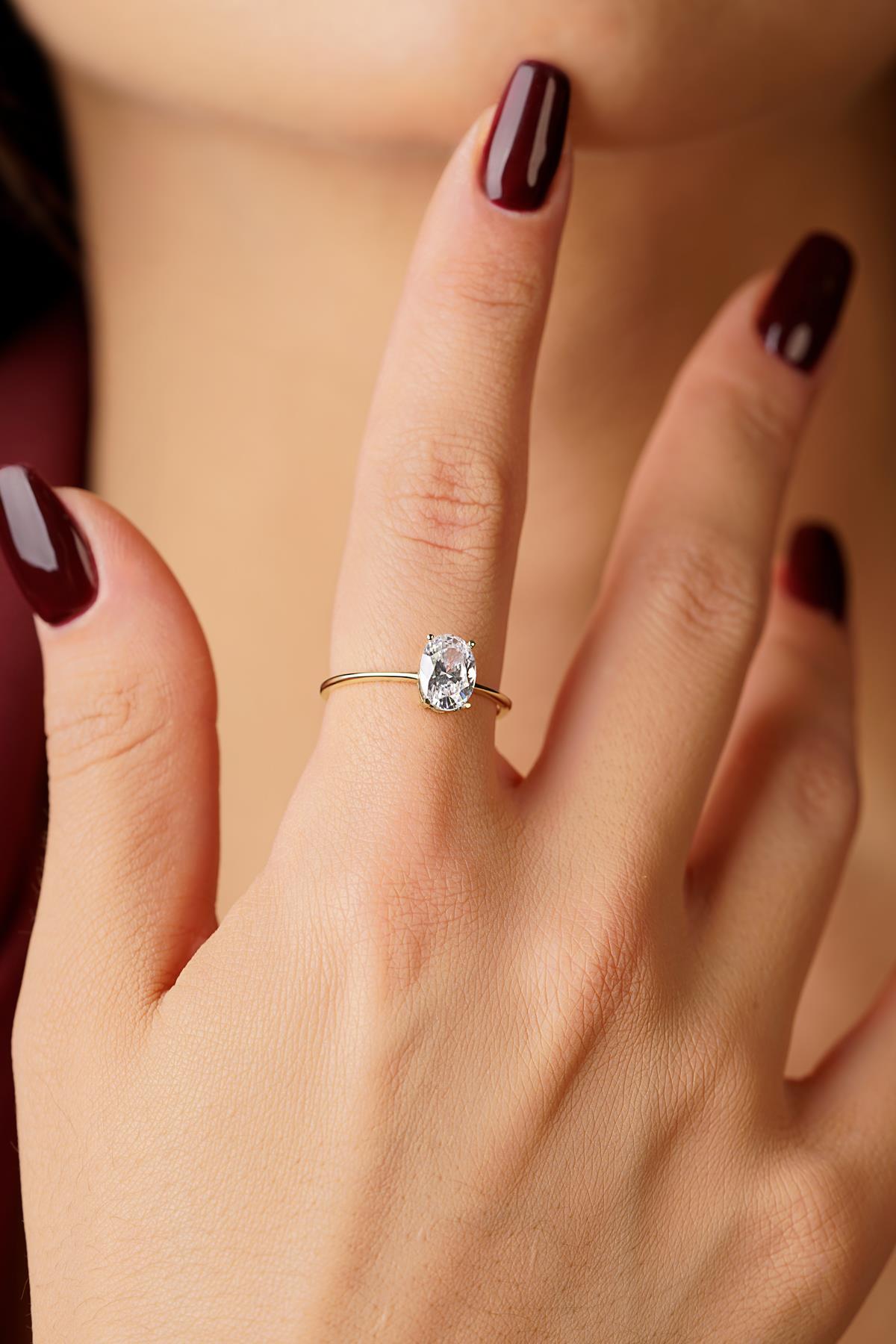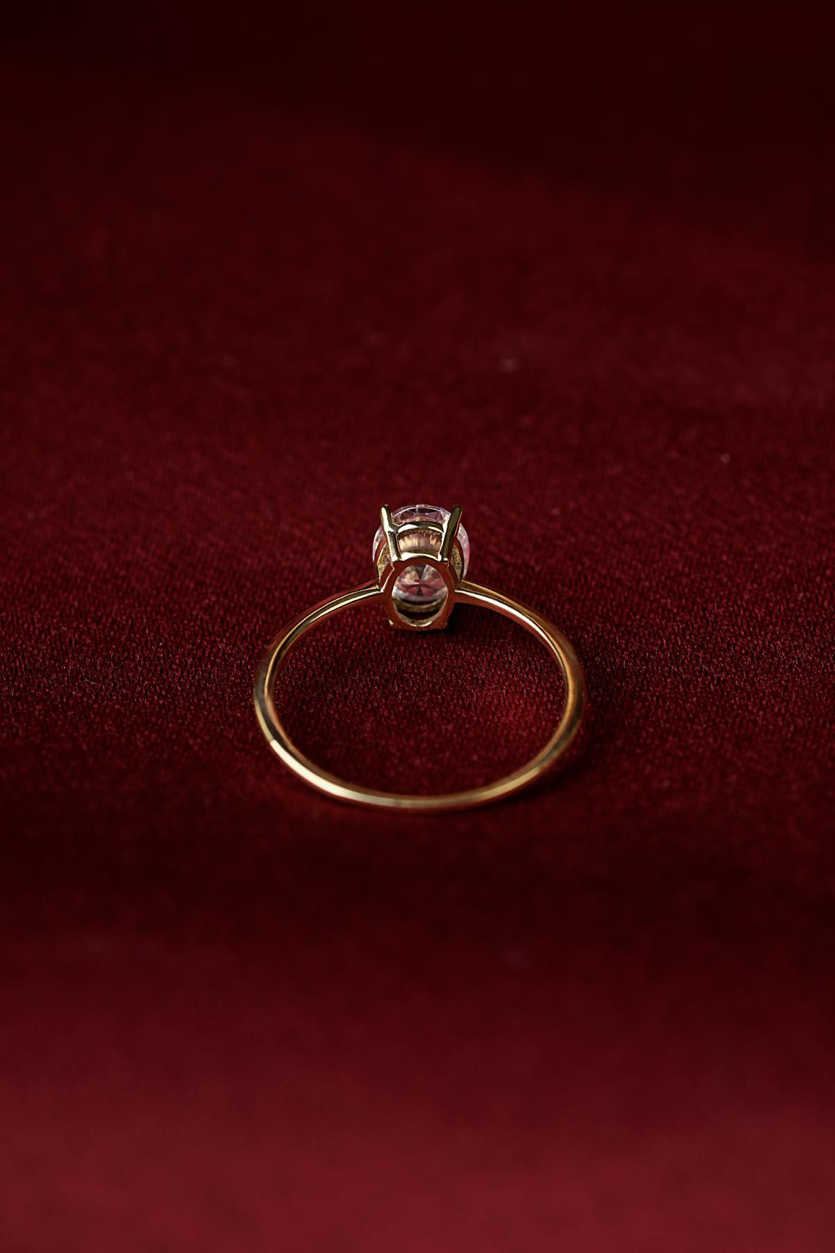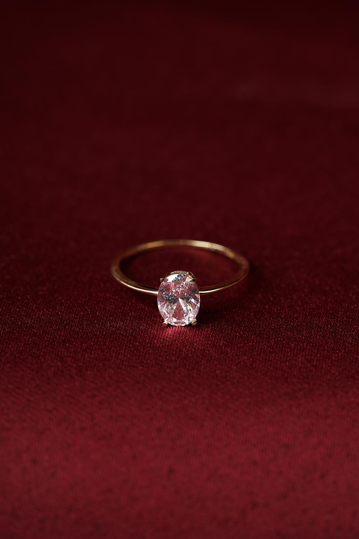 14 Ayar Altın Oval Tek Taş Yüzük