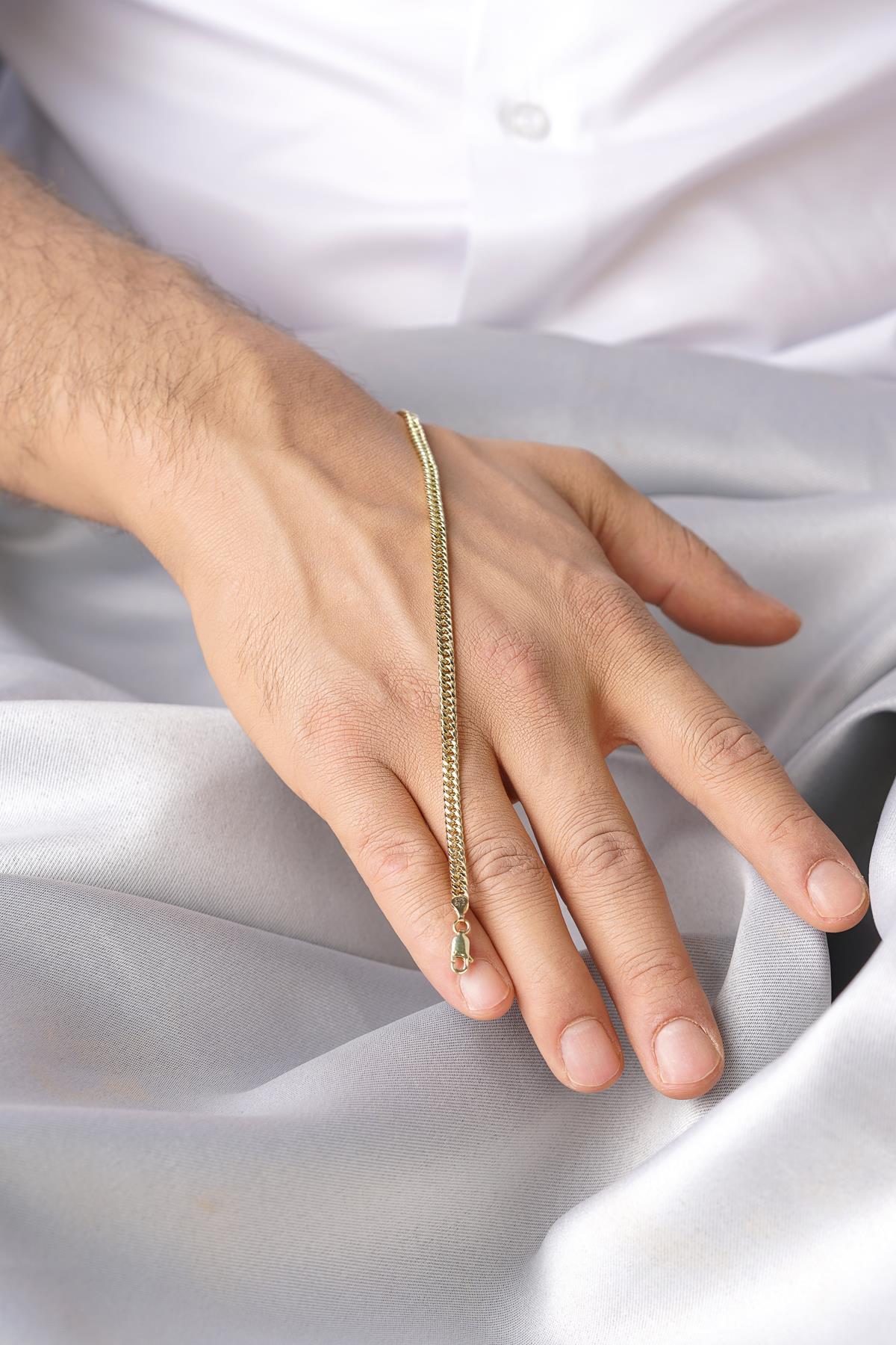 14 Ayar Altın Sık Gurmet Zincir Erkek Bileklik
