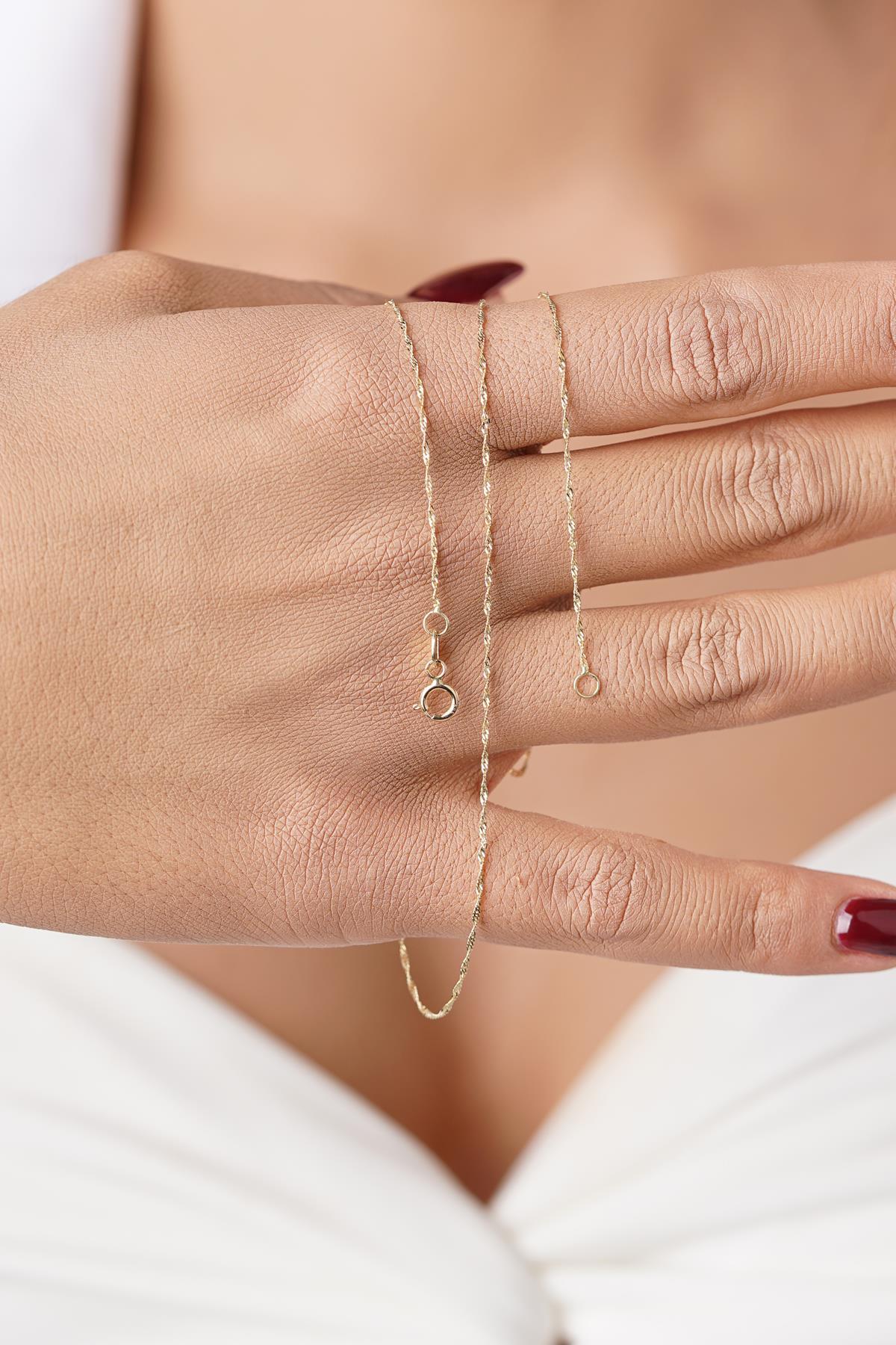14 Ayar Altın Baby Singapur Zincir Kolye 0.75 mm