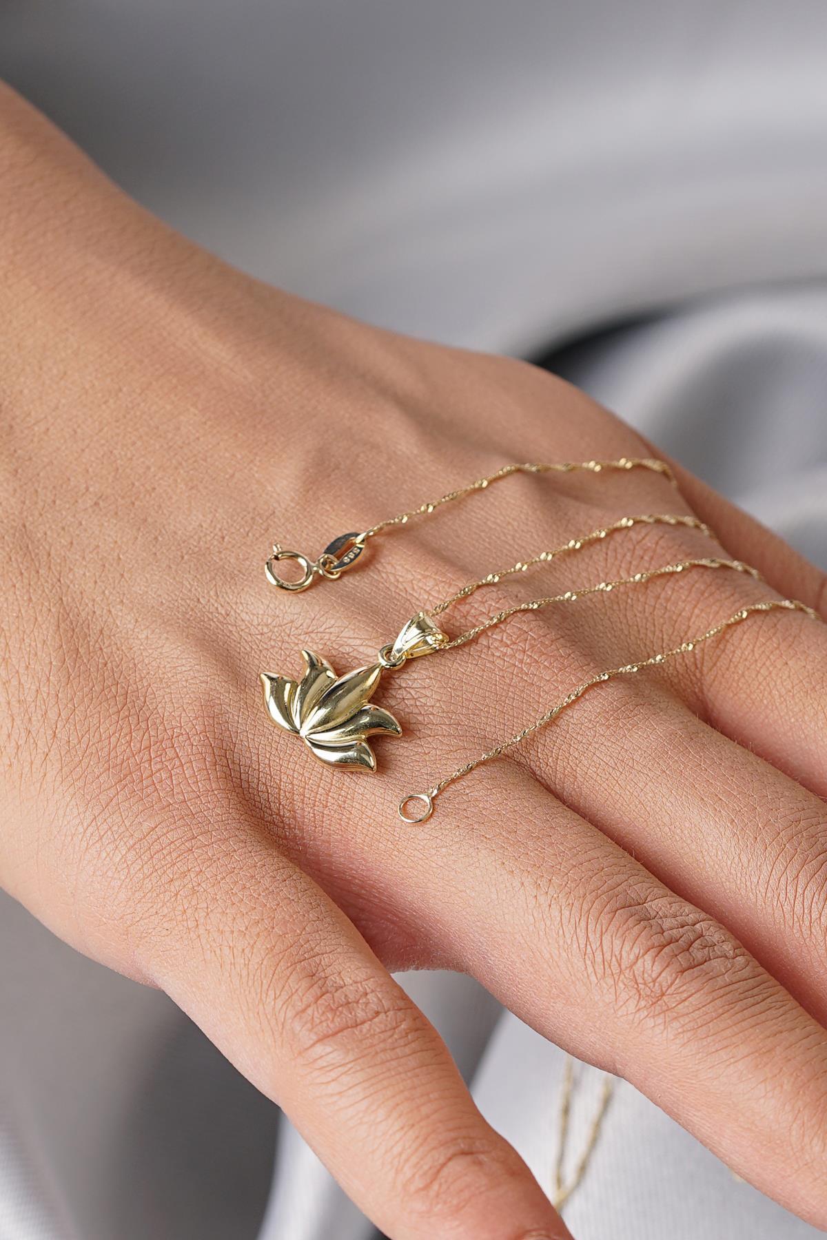 14 Ayar Altın Singapur Zincirli Büyük Lotus Kolye