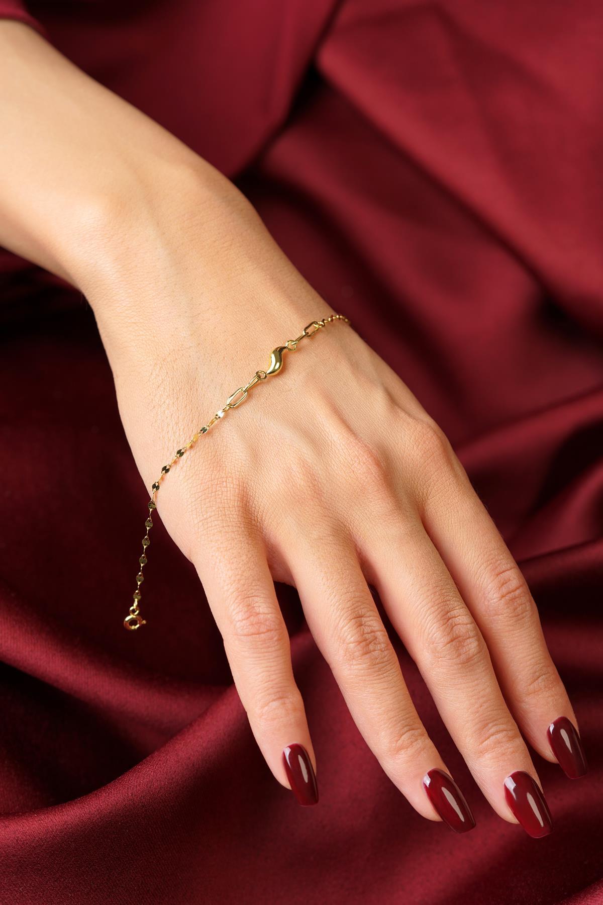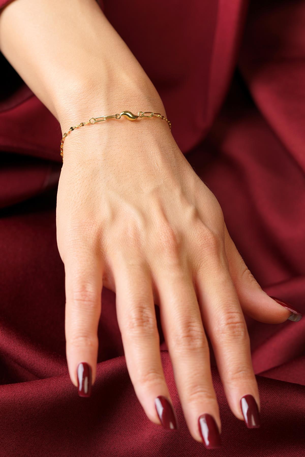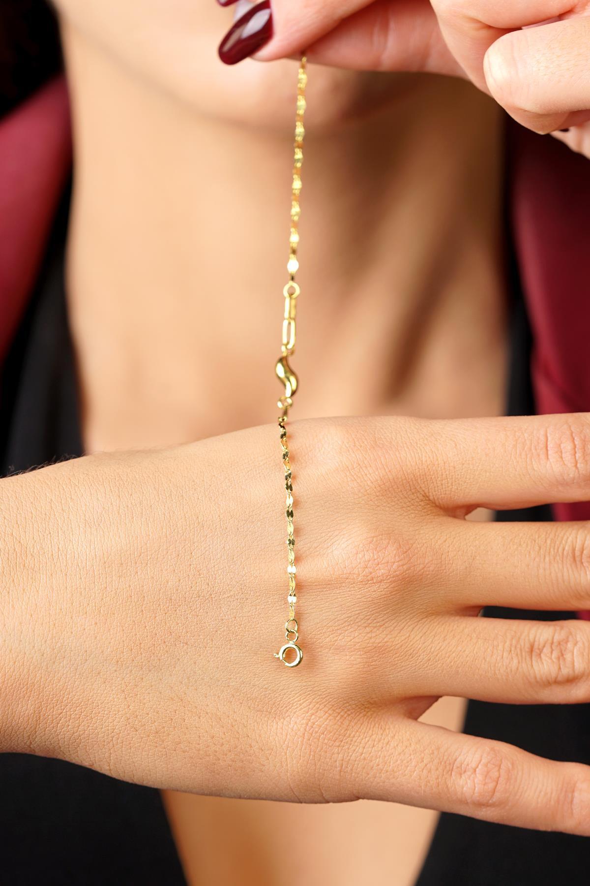 14 Ayar Altın Su Dalgası Aynalı Zincir Bileklik