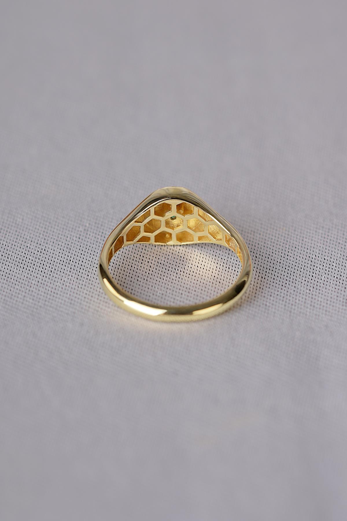 14 Ayar Altın Zümrüt Taşlı Kutup Yıldızı Yüzük