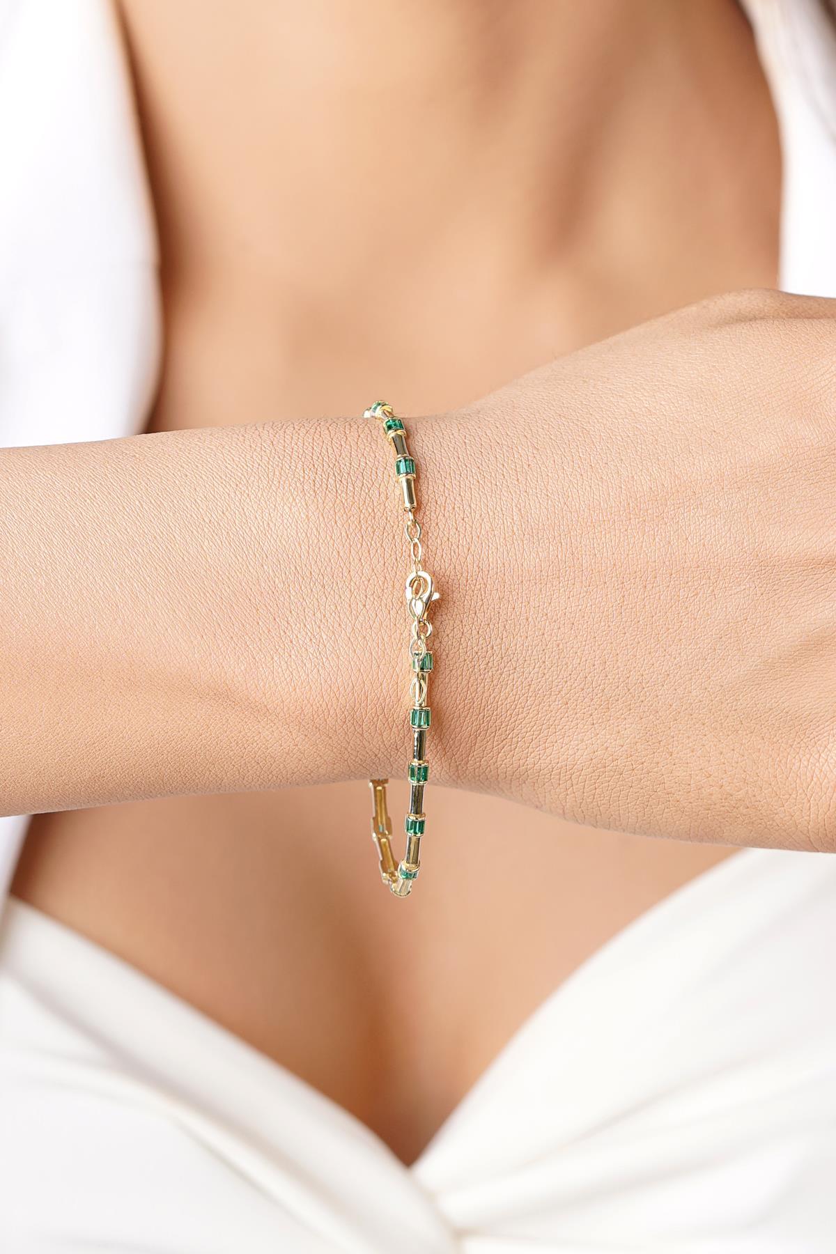 14 Ayar Altın Zümrüt Taşlı Modern Bileklik