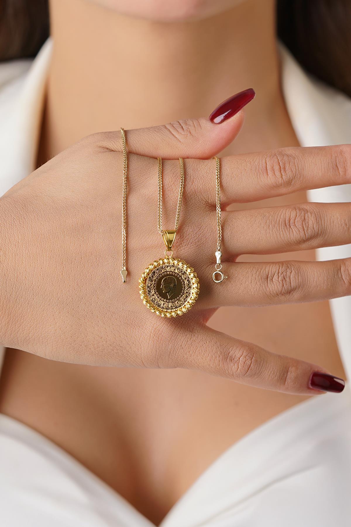 22 Ayar Çeyrek Altın Uç 14 Ayar Altın İpek Zincir Kolye