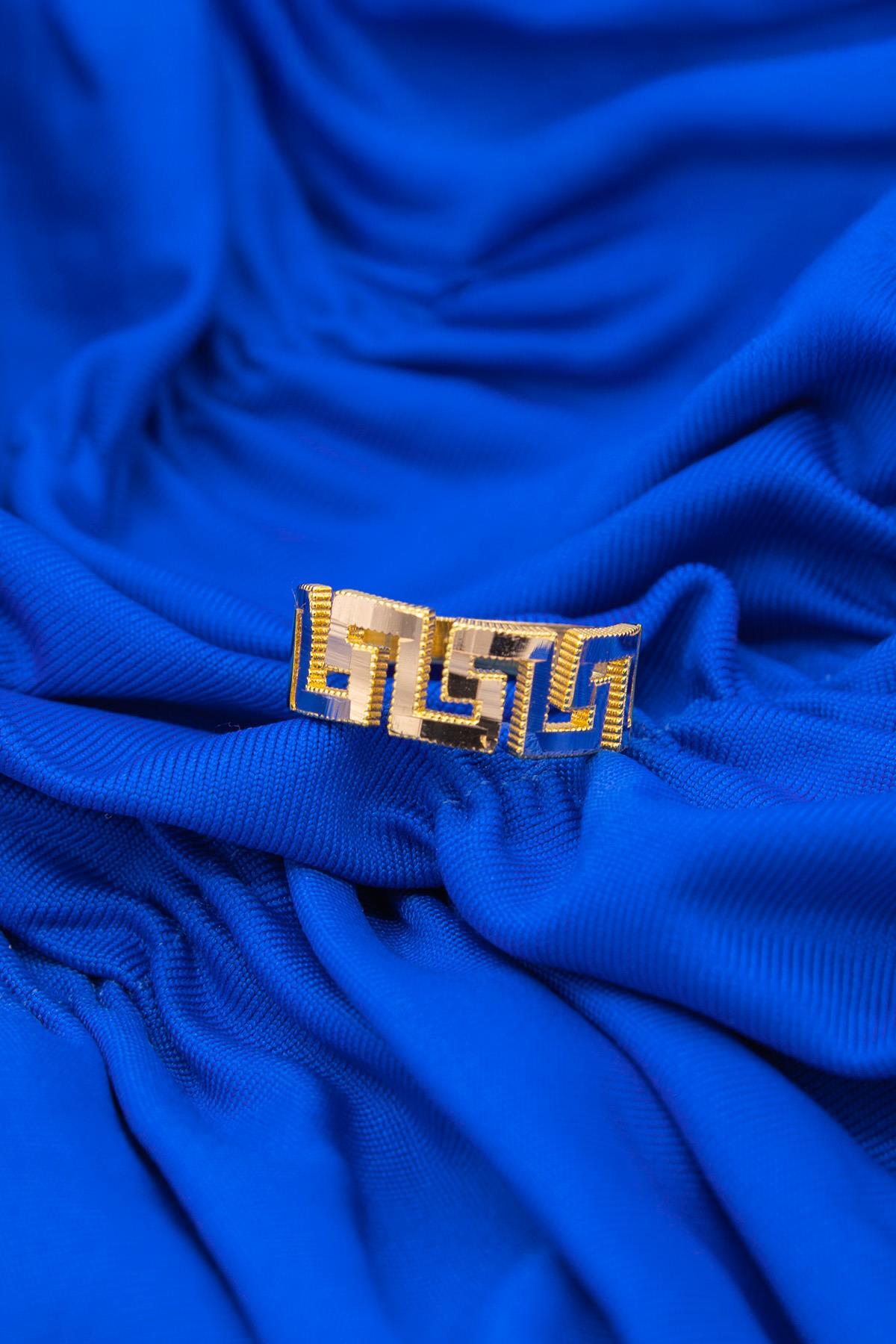 22 Ayar Görünümlü 14 Ayar Altın Greek Desenli Ajda Yüzük