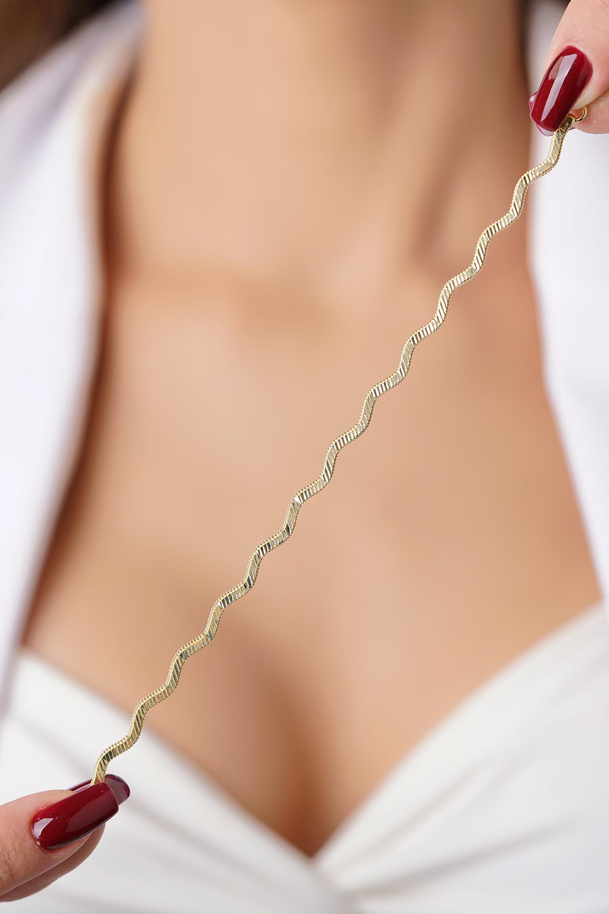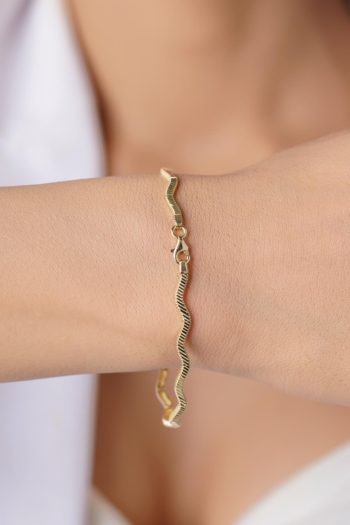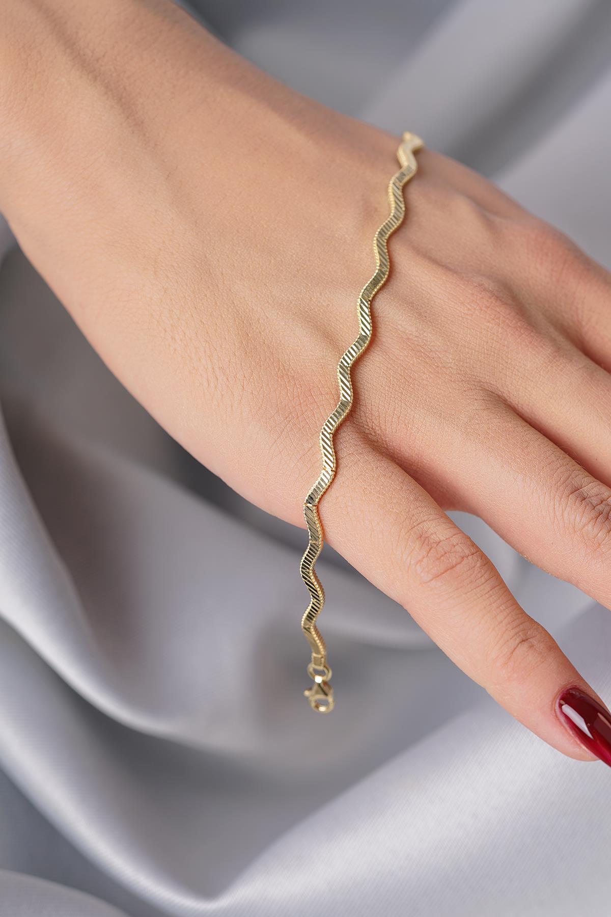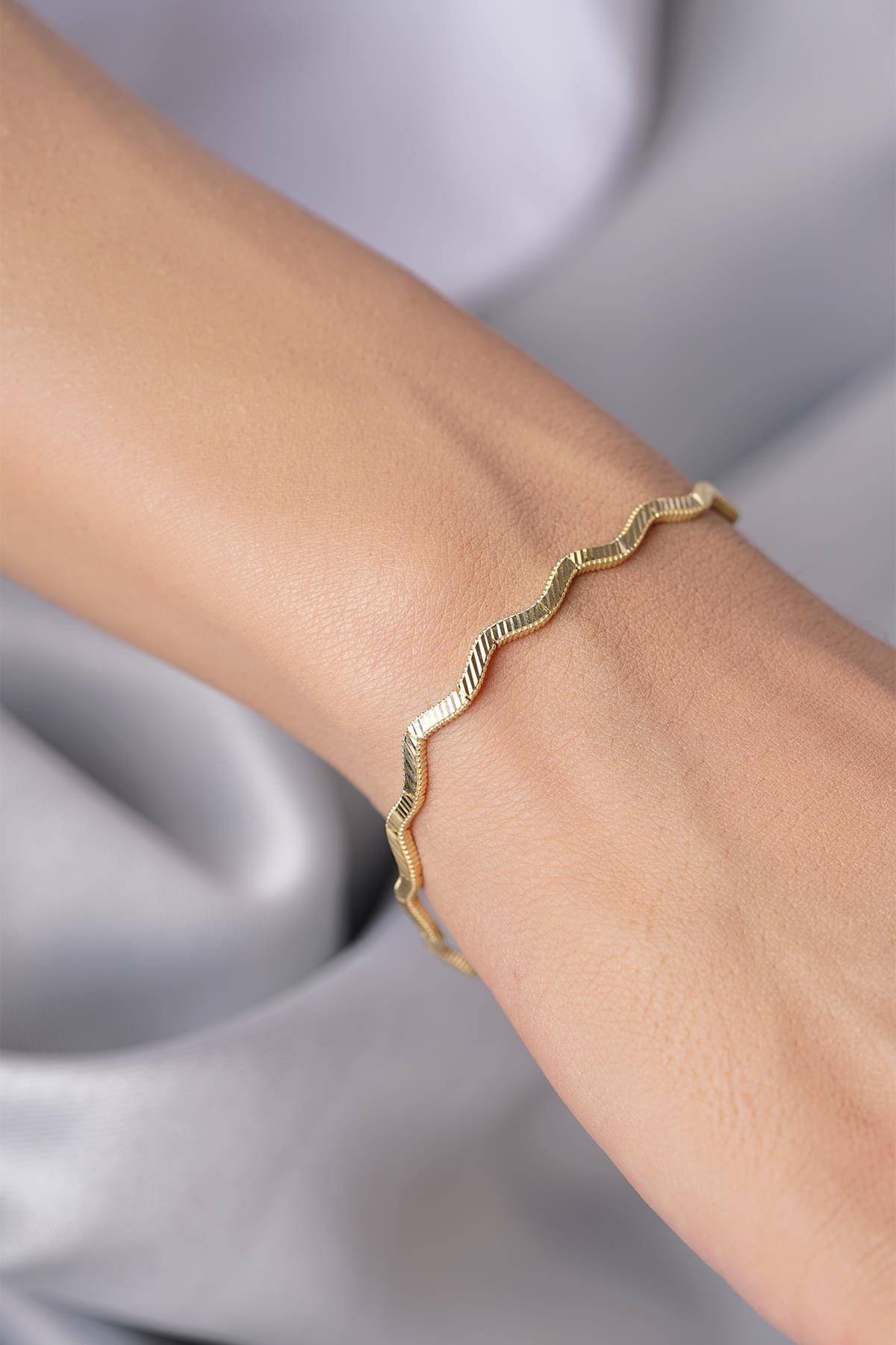 22 Ayar Görünümlü 14 Ayar Altın Kalemli Zikzak Ajda Bileklik