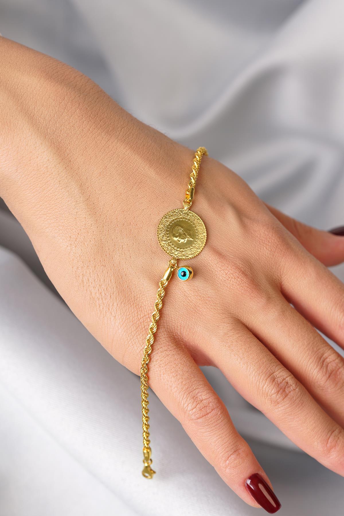 22 Ayar Yeni Çeyrekli 14 Ayar Altın Burgu Halat Zincir Bileklik