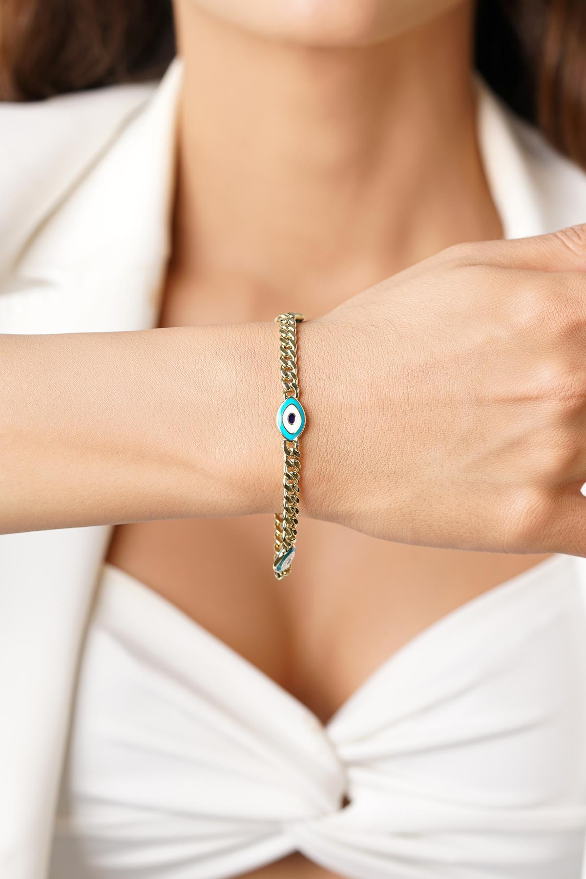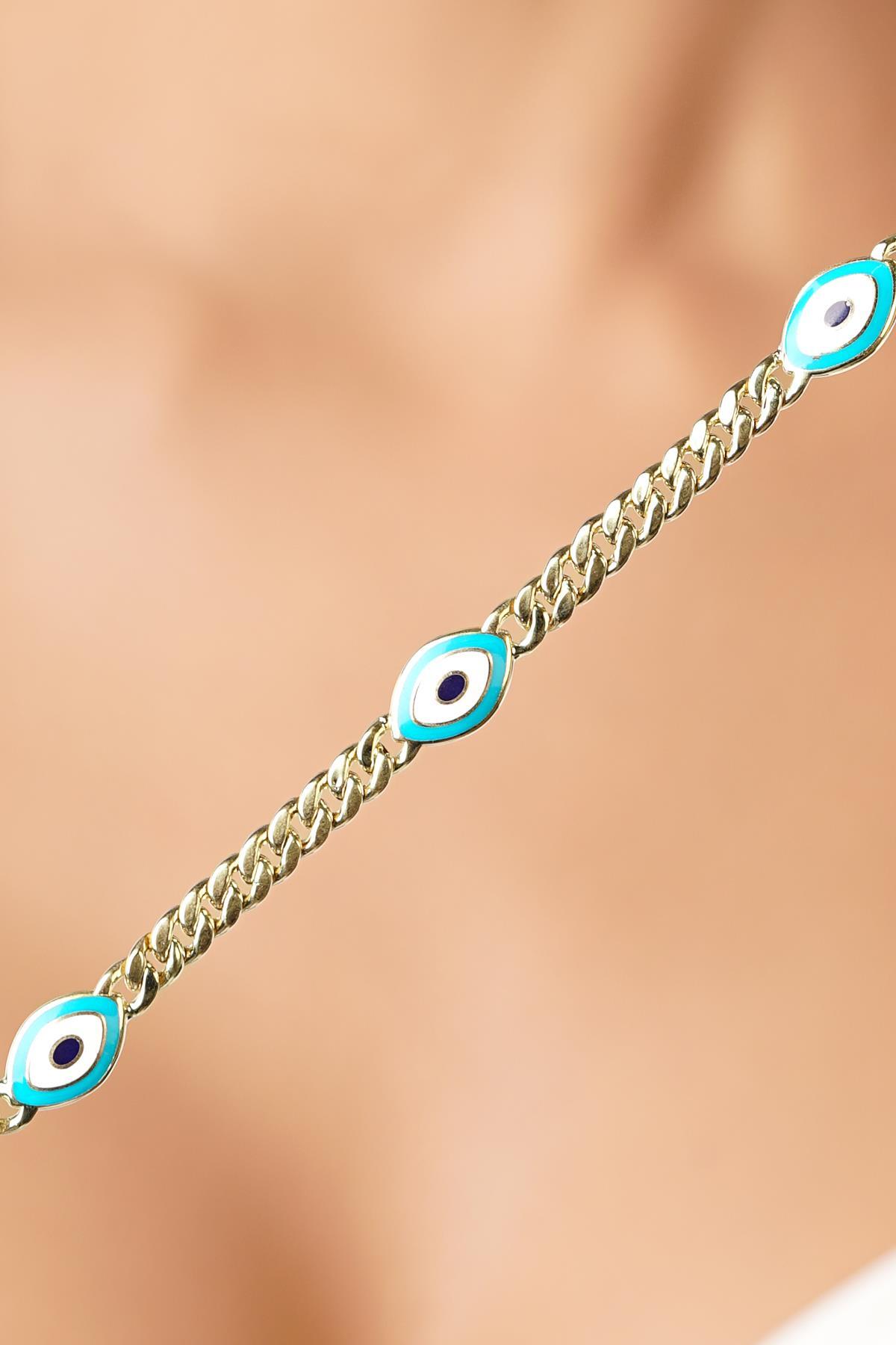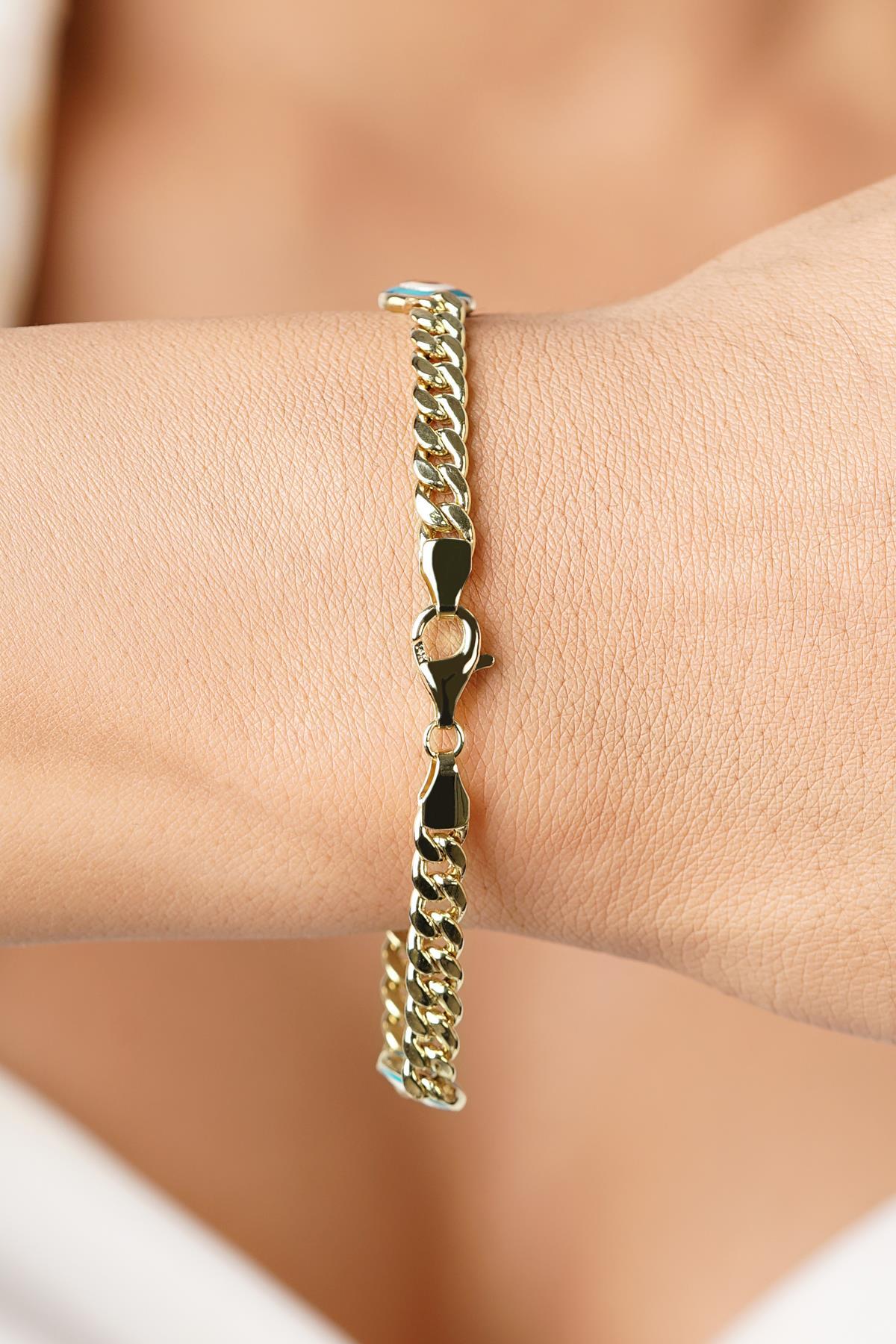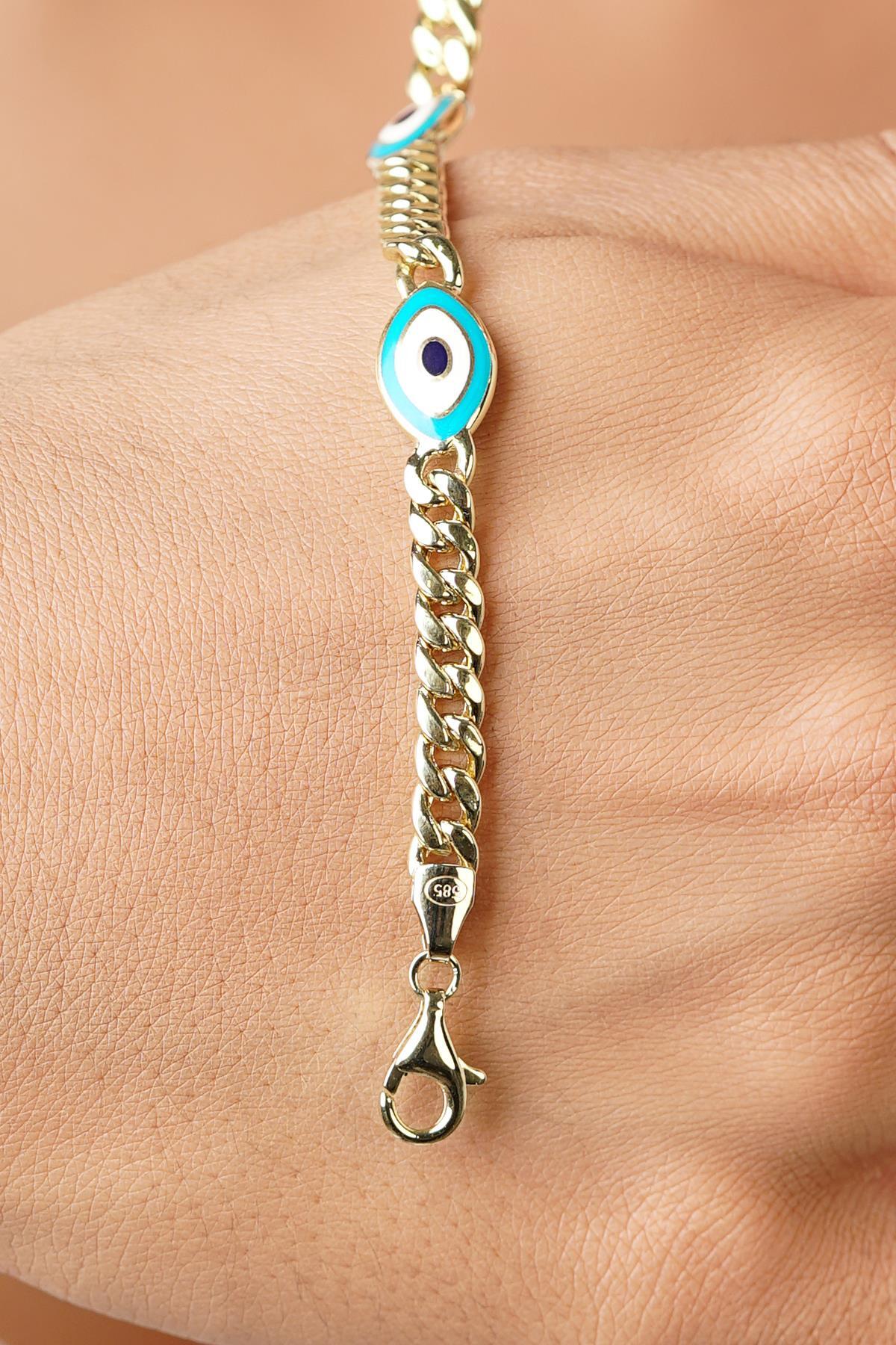 14 Ayar Altın 3'lü Çekik Göz Gurmet Zincir Bileklik