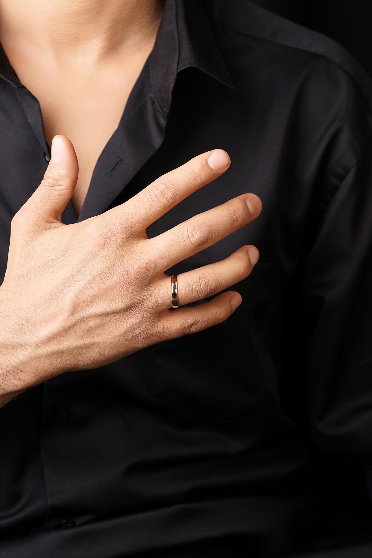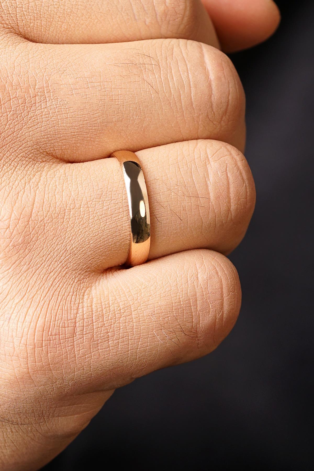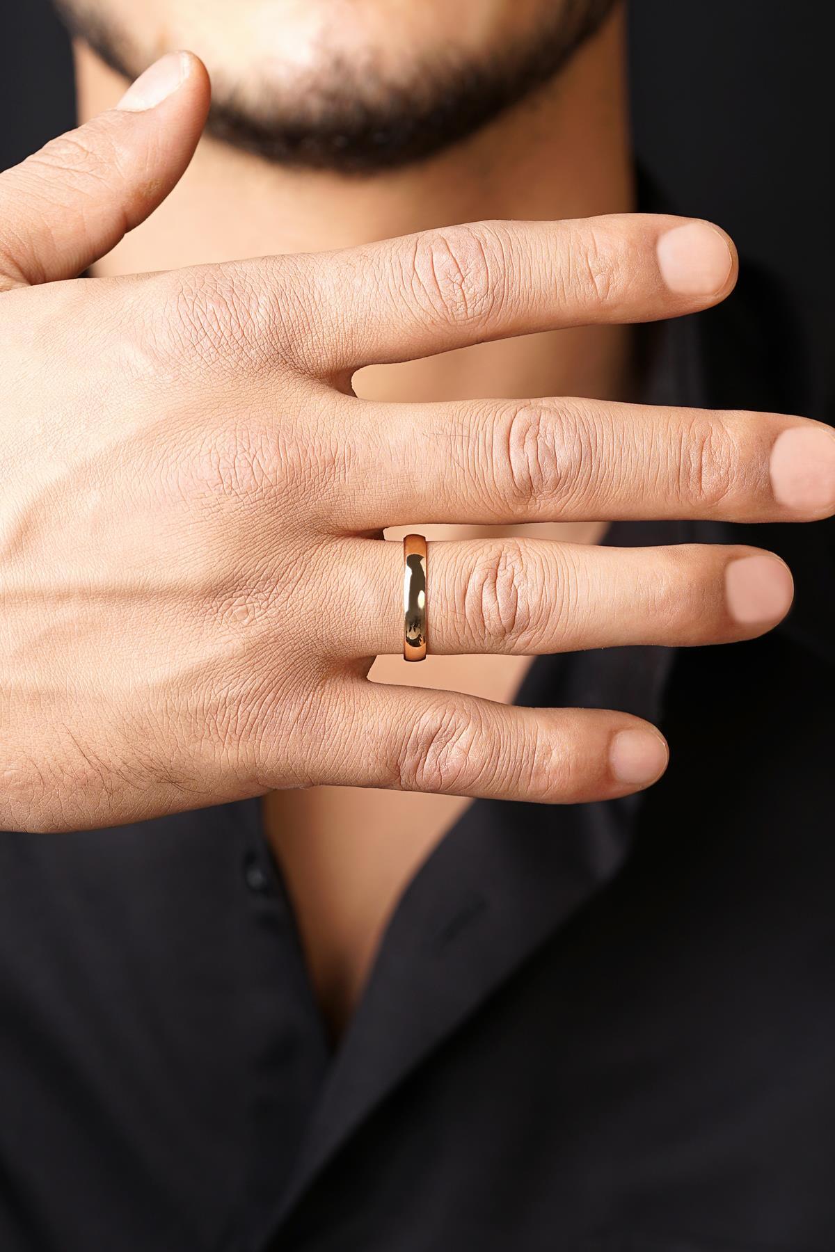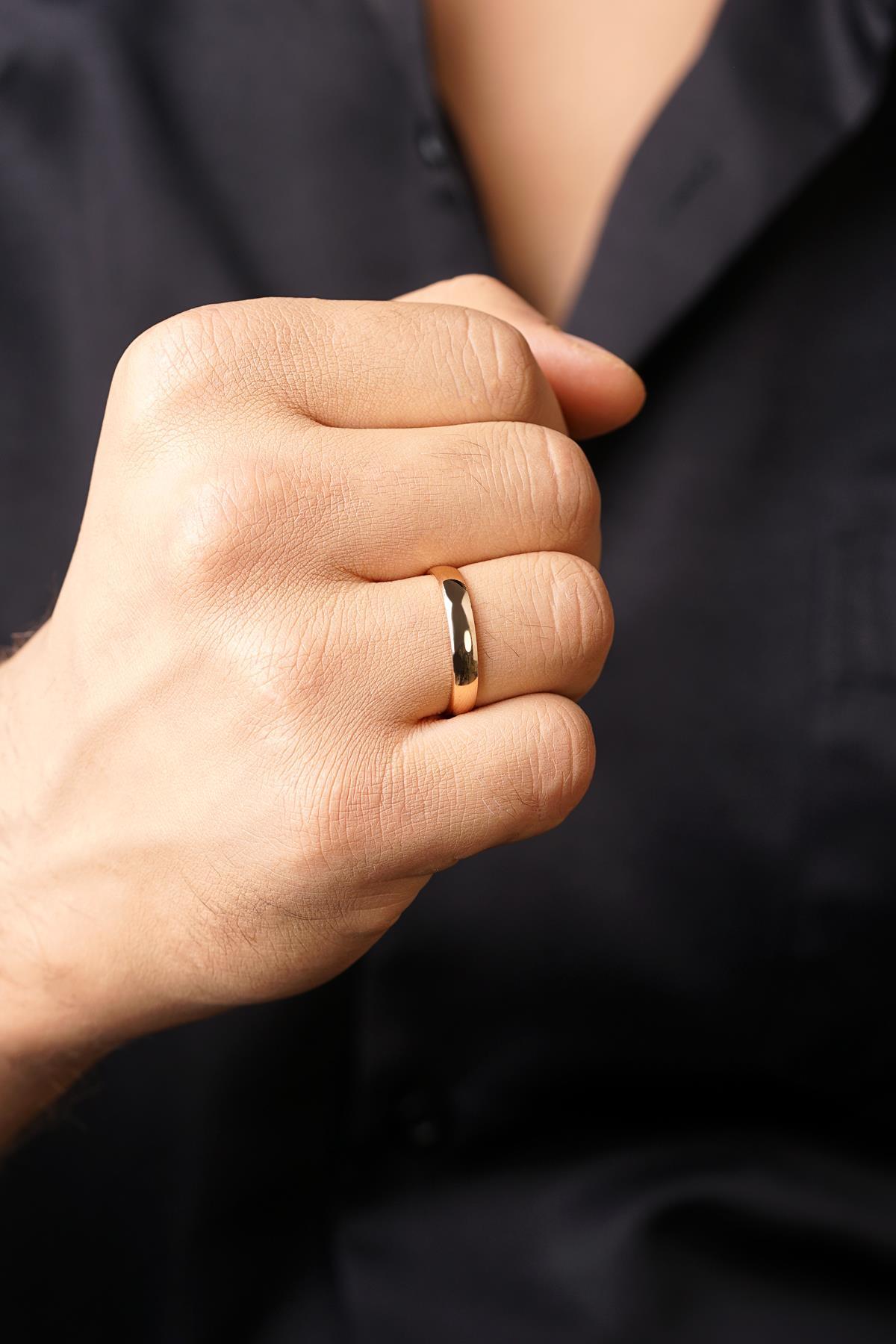 14 Ayar Altın 4 mm Bombeli Erkek Klasik Alyans