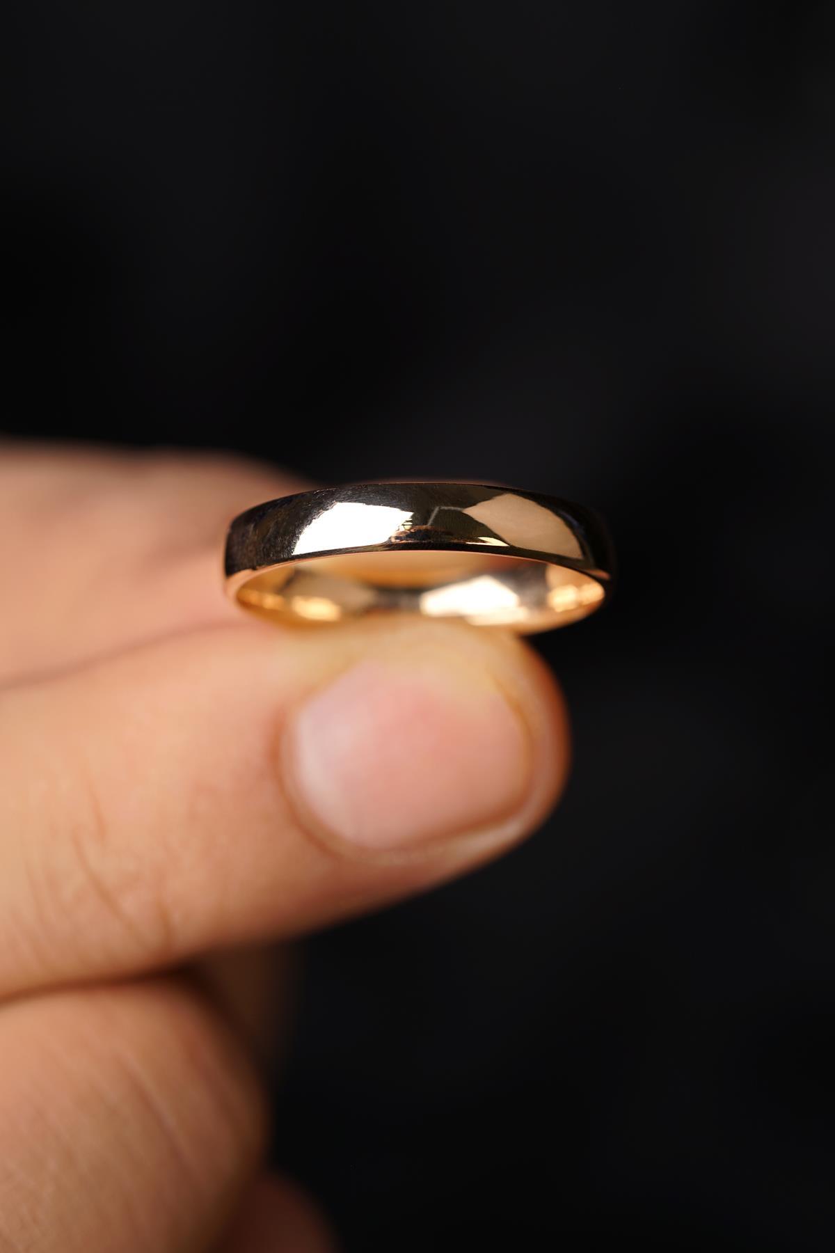 14 Ayar Altın 3 mm Bombeli Kadın Klasik Alyans