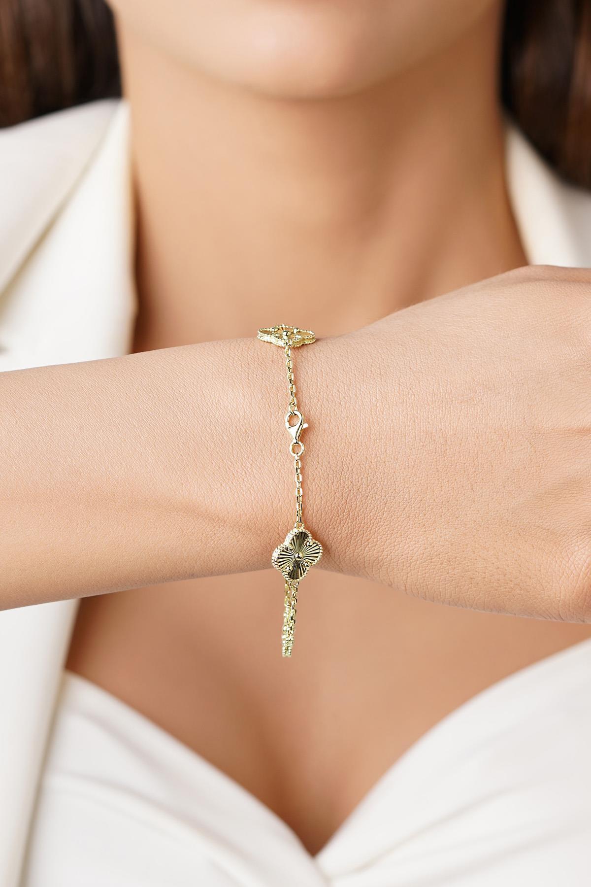 14 Ayar Altın 5 Sıralı Şans Yoncası Bileklik
