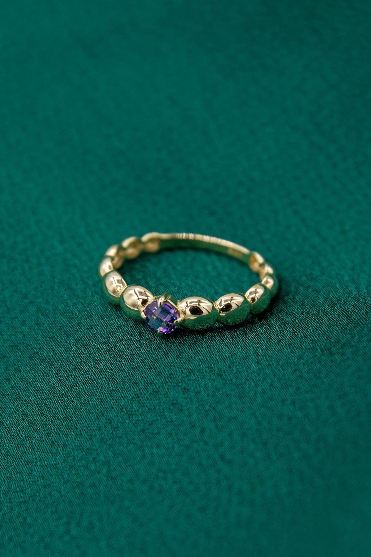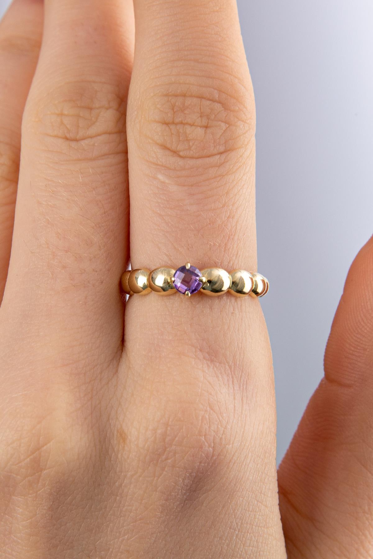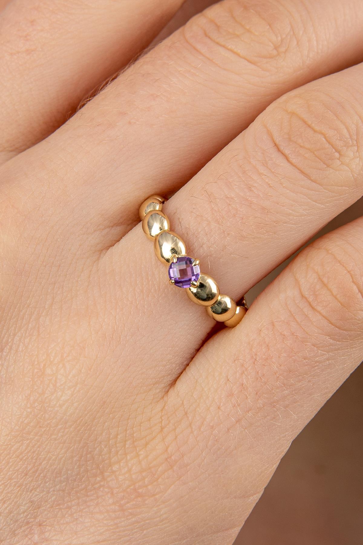 14 Ayar Altın Ametist Taşlı Bombeli Yüzük