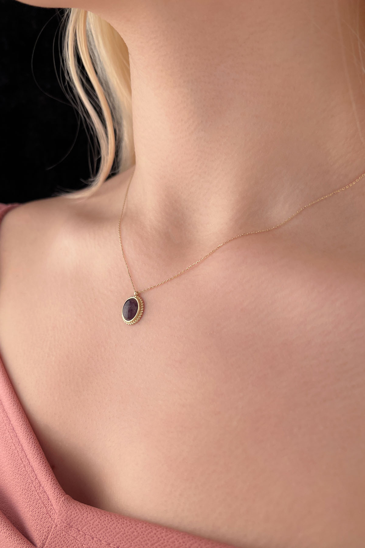 14 Ayar Altın Ametist Taşlı Kolye
