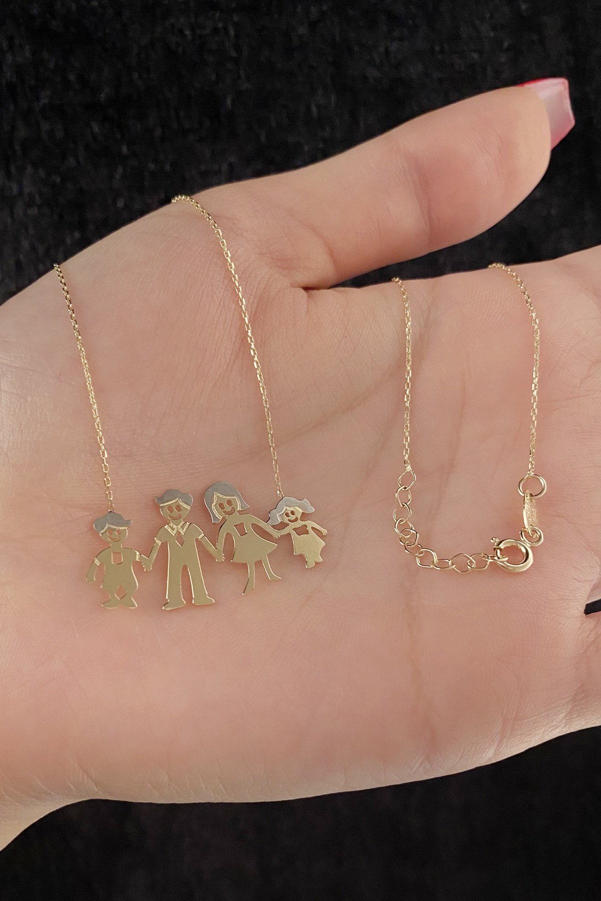 14 Ayar Altın Anne Baba Ve Çocuklar Aile Kolyesi