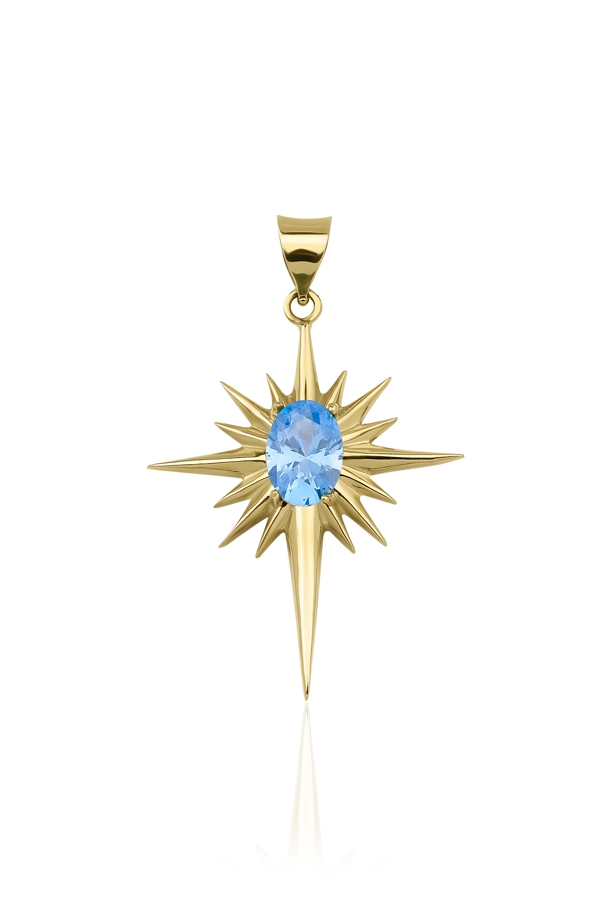14 Ayar Altın Aquamarin Detaylı Kutup Yıldızı Kolye Ucu