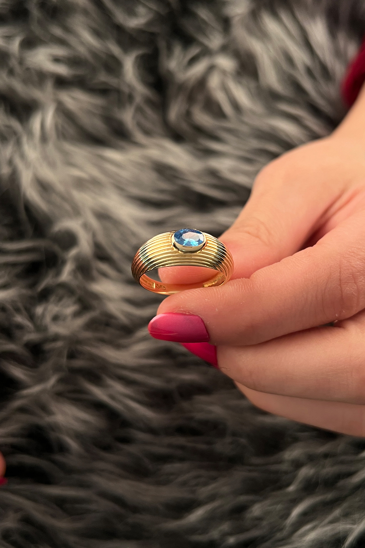 14 Ayar Altın Aquamarine Detaylı Yüzük