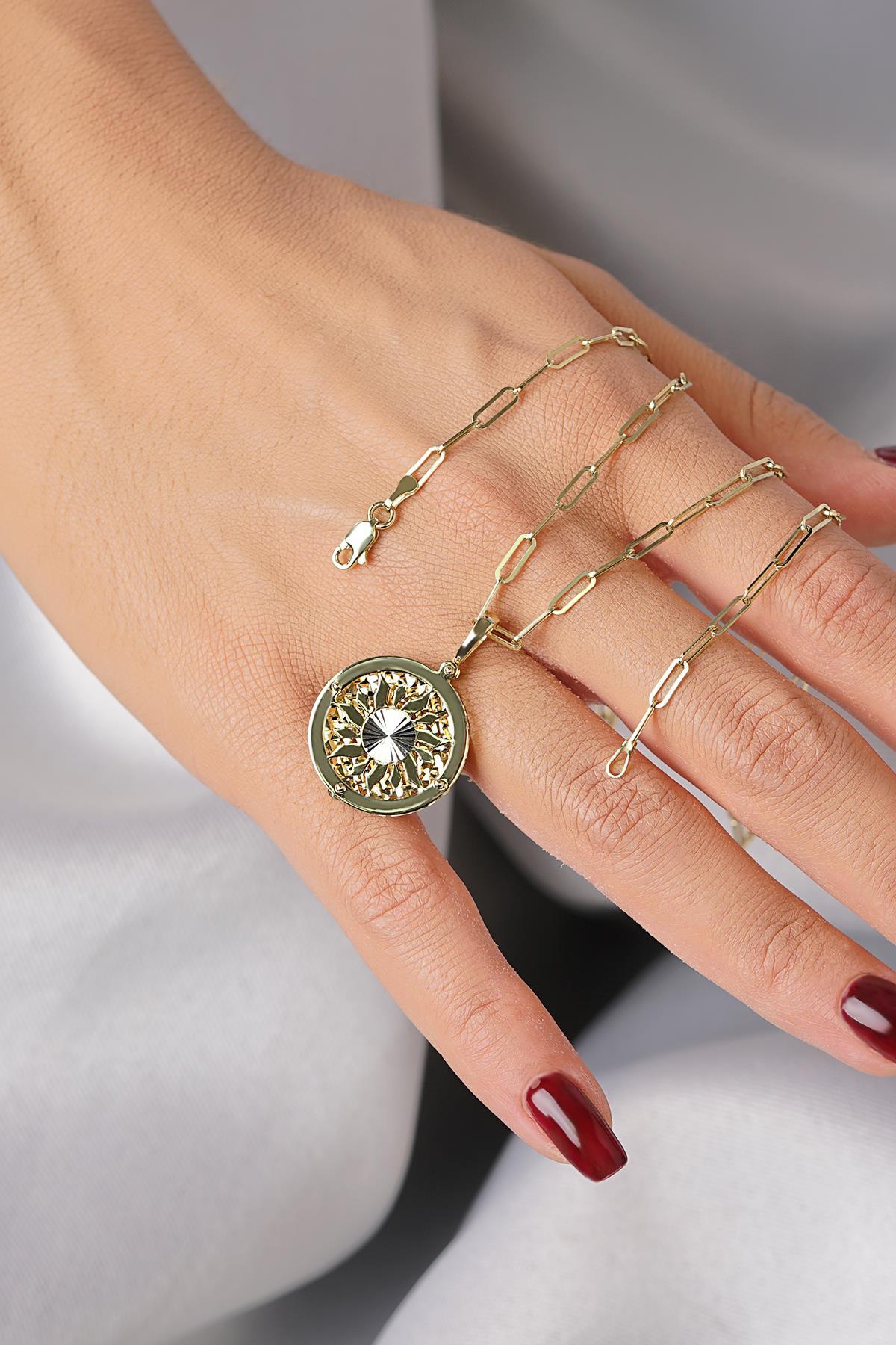 14 Ayar Altın Ataç Zincirli Güneş Uçlu Kolye