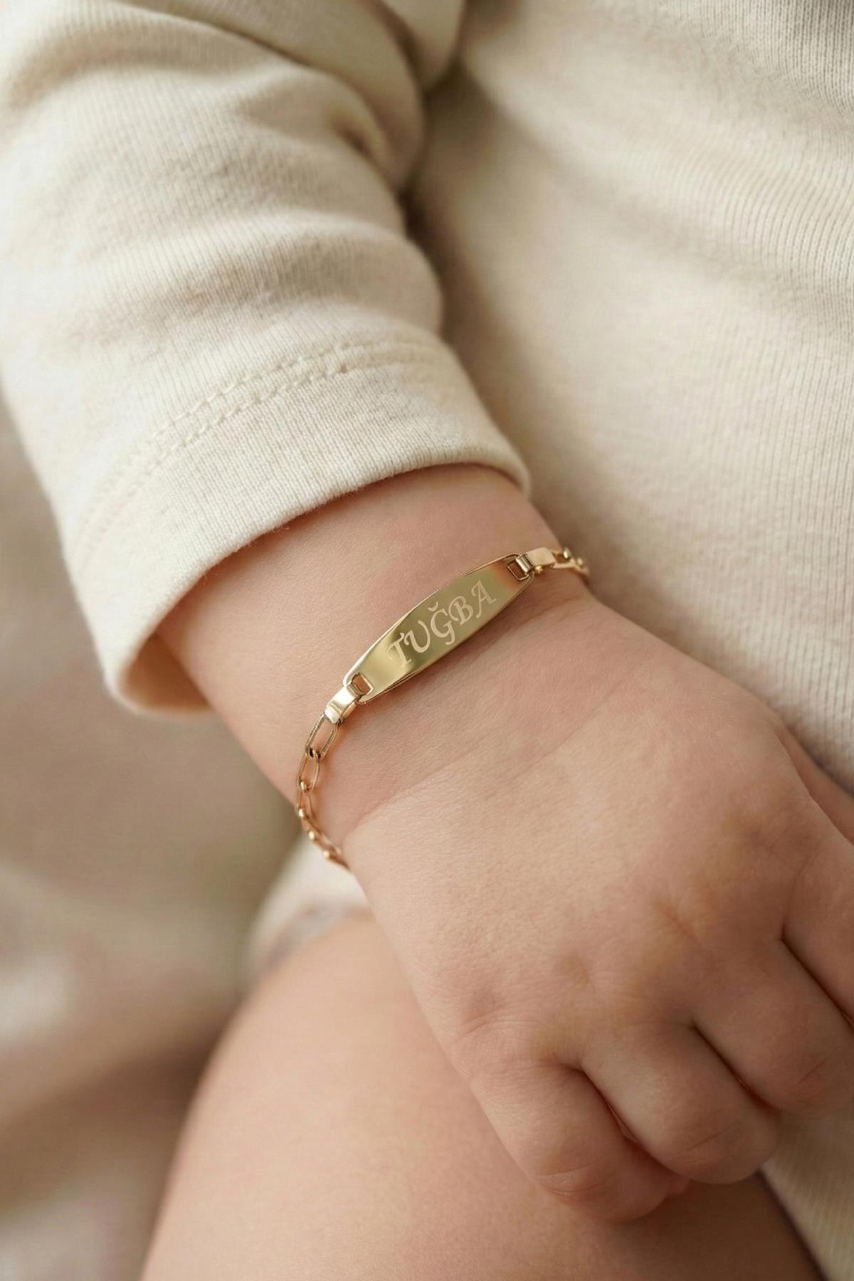 14 Ayar Altın Ataç Zincirli Oval Plaka Bebek Çocuk Künyesi