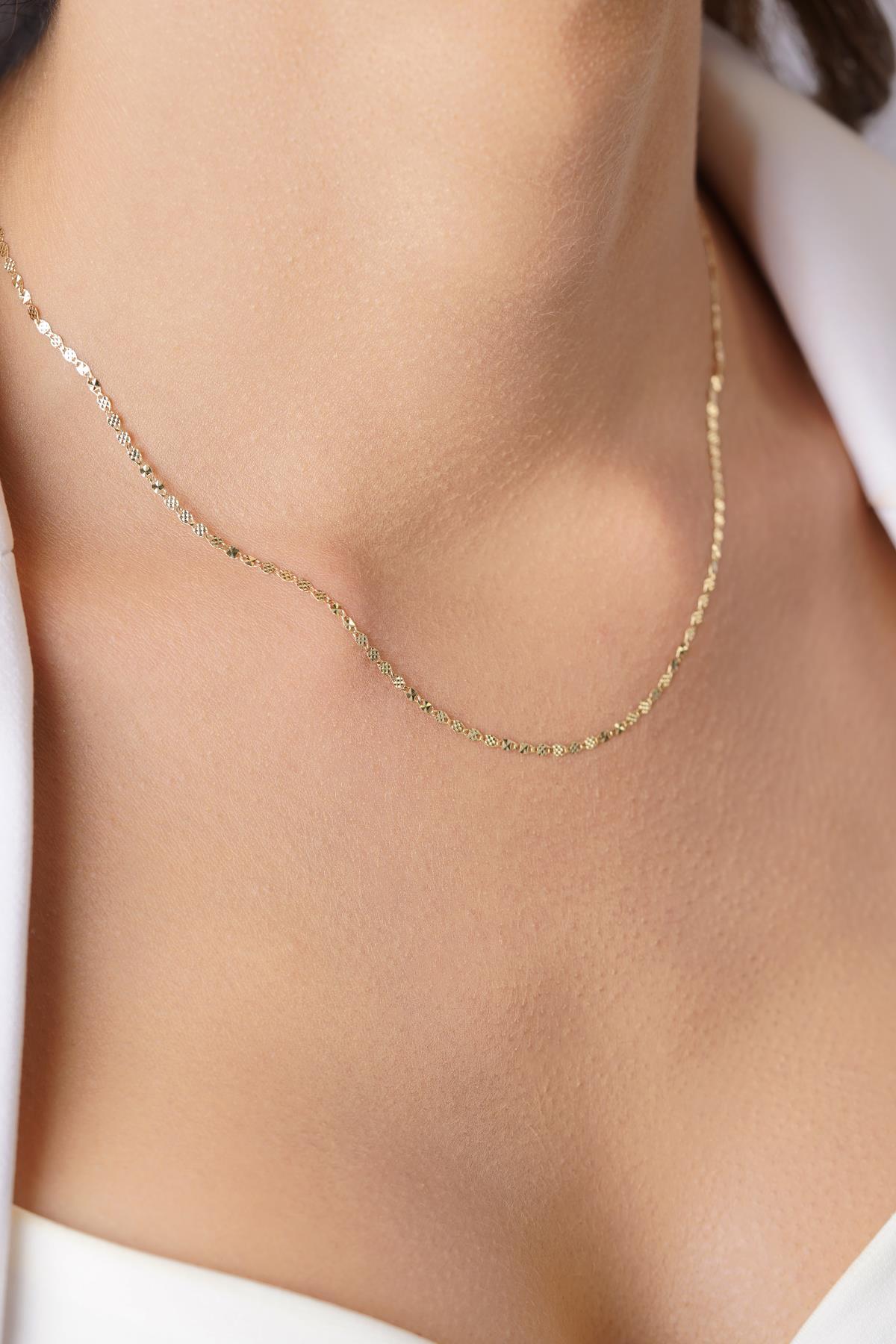 14 Ayar Altın Aynalı Zincir Kolye Orta 1.75 mm