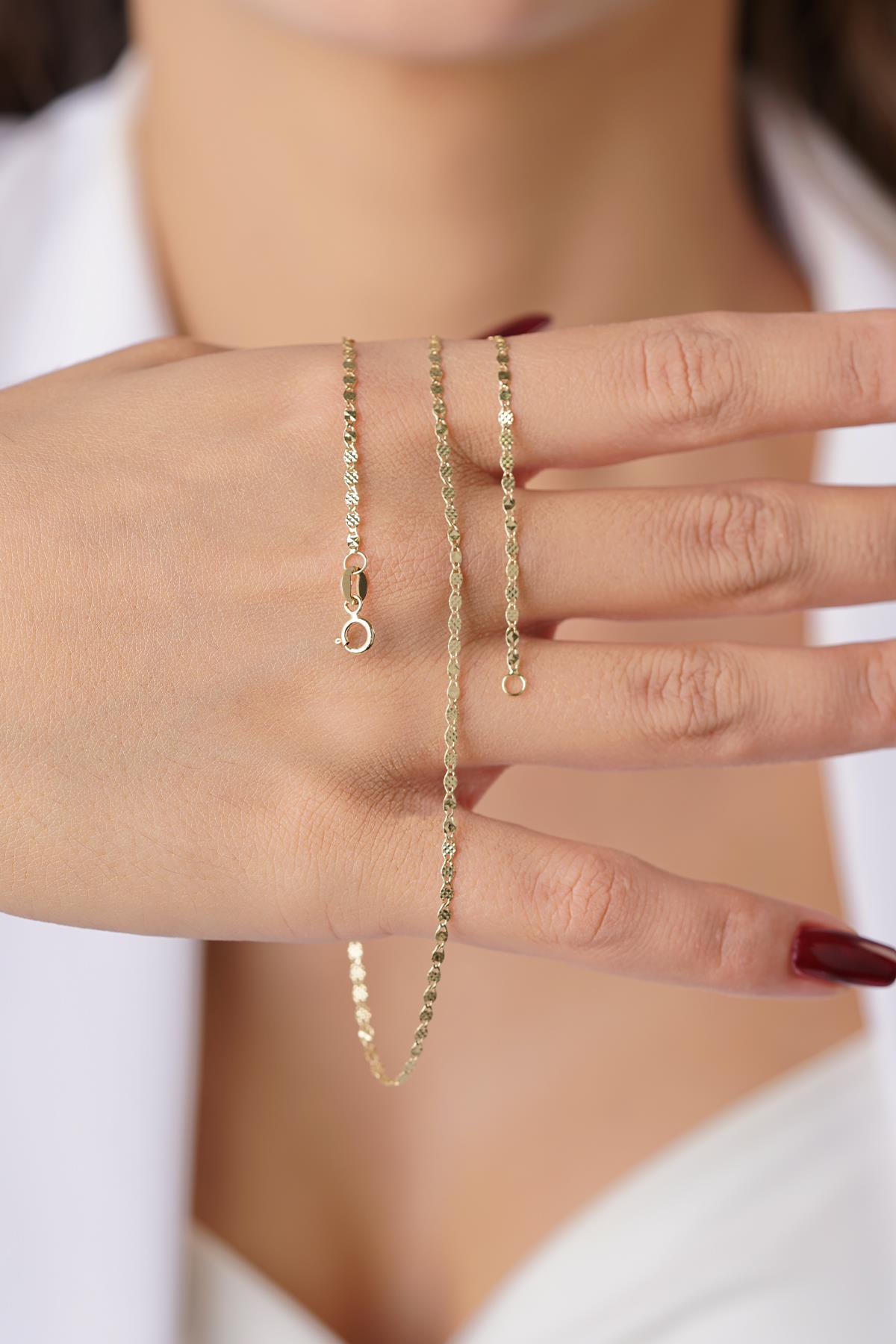 14 Ayar Altın Işıltılı Aynalı Zincir Yonca Uçlu Kolye