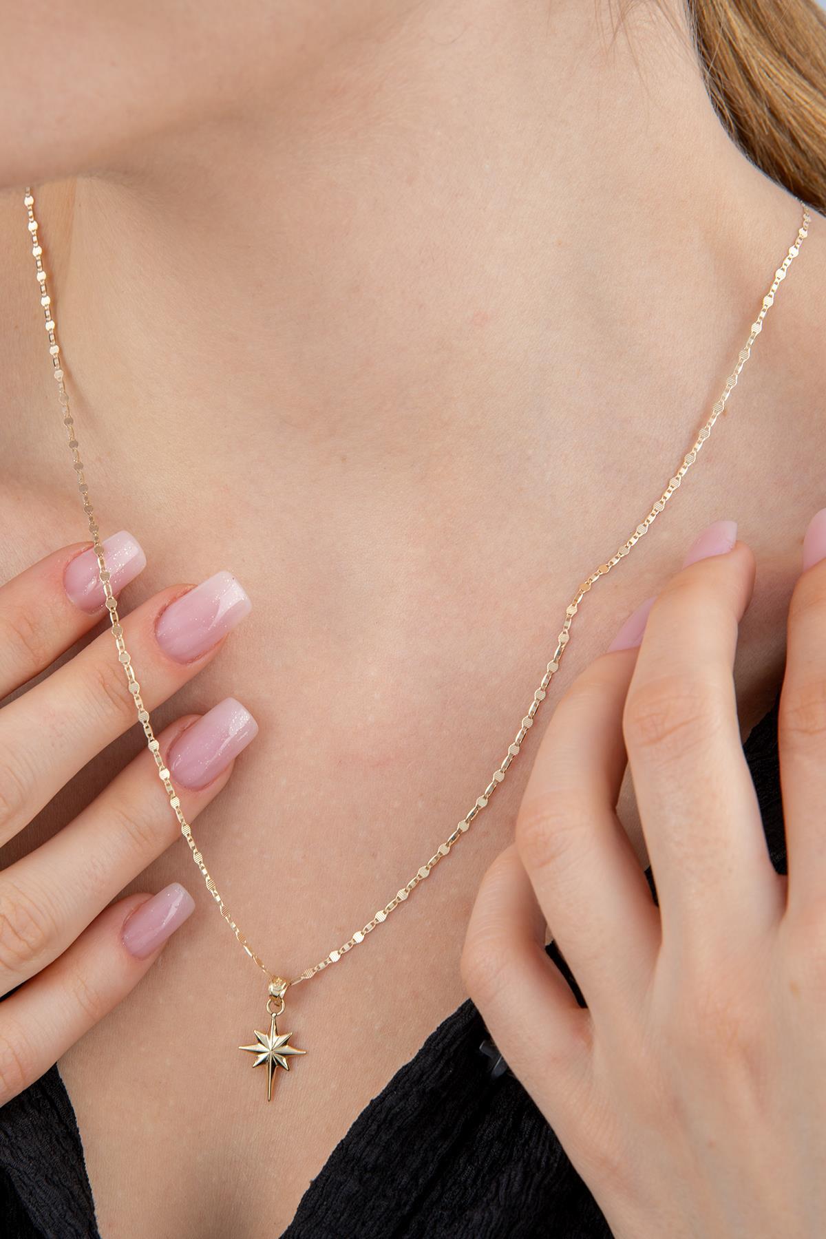 14 Ayar Altın Aynalı Valentino Zincir Kuzey Yıldızı Kolye