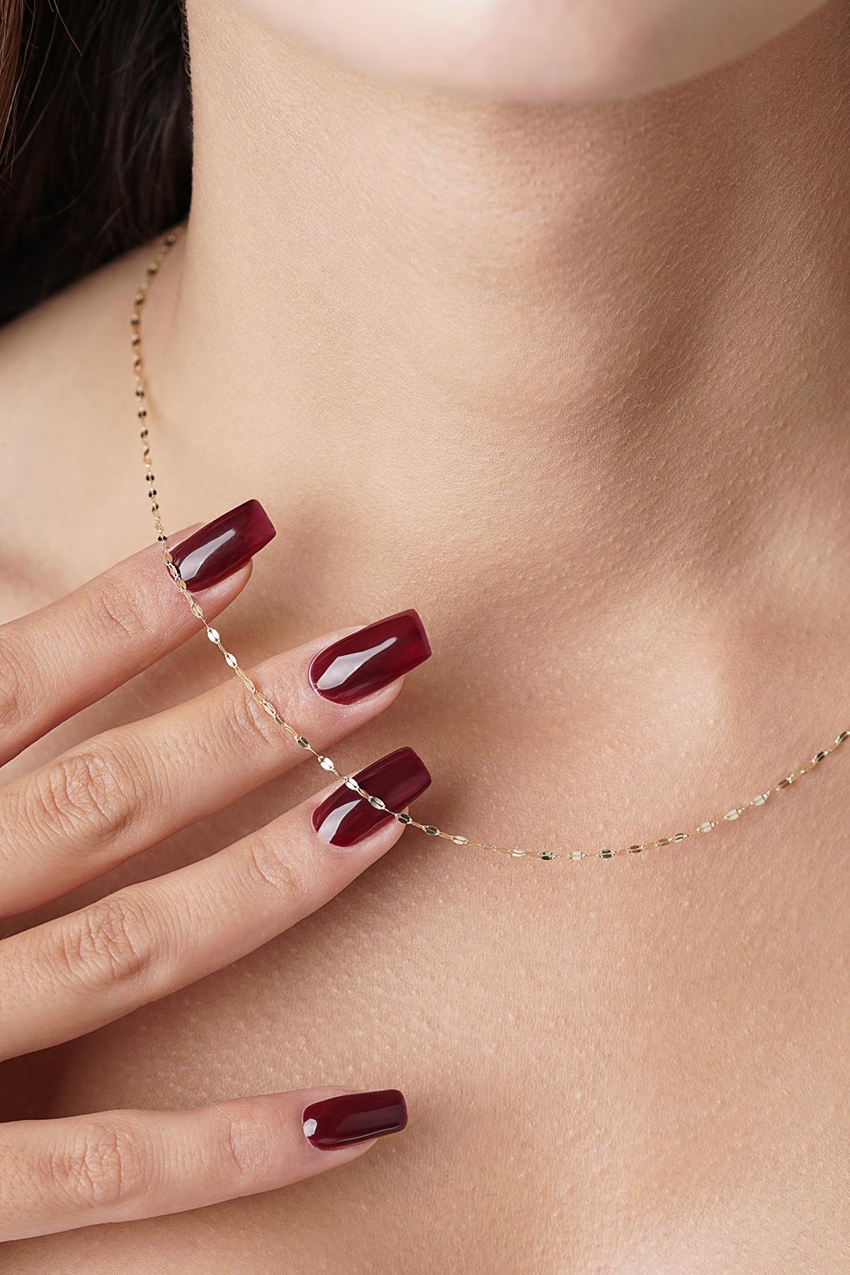 Boyunda “fazla” görünmeden etki bırakan parçalar vardır; bu zincir tam da o sınıfta. 14 ayar altından üretilen 1.35 mm aynalı zincir kolye, günlük kullanımda zarif bir duruş sunarken, aynalı yüzey dokusuyla ışığı küçük dokunuşlarla yakalayan bir görünüm verir. Üstelik 45 cm, 50 cm ve 55 cm seçenekleriyle boyun hattınıza ve kombin alışkanlıklarınıza göre kolayca uyumlanır.