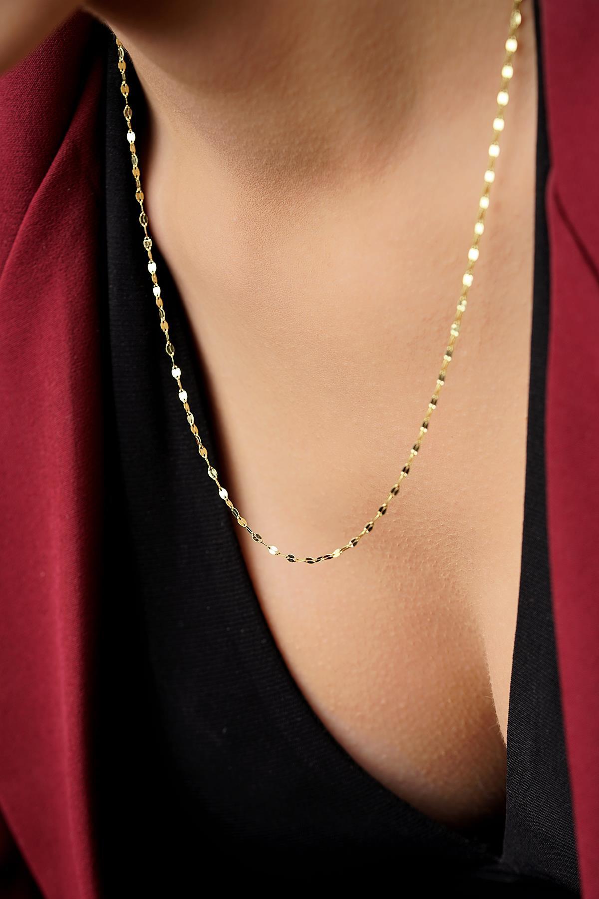 14 Ayar Altın Aynalı Zincir Kolye Orta 1.75 mm