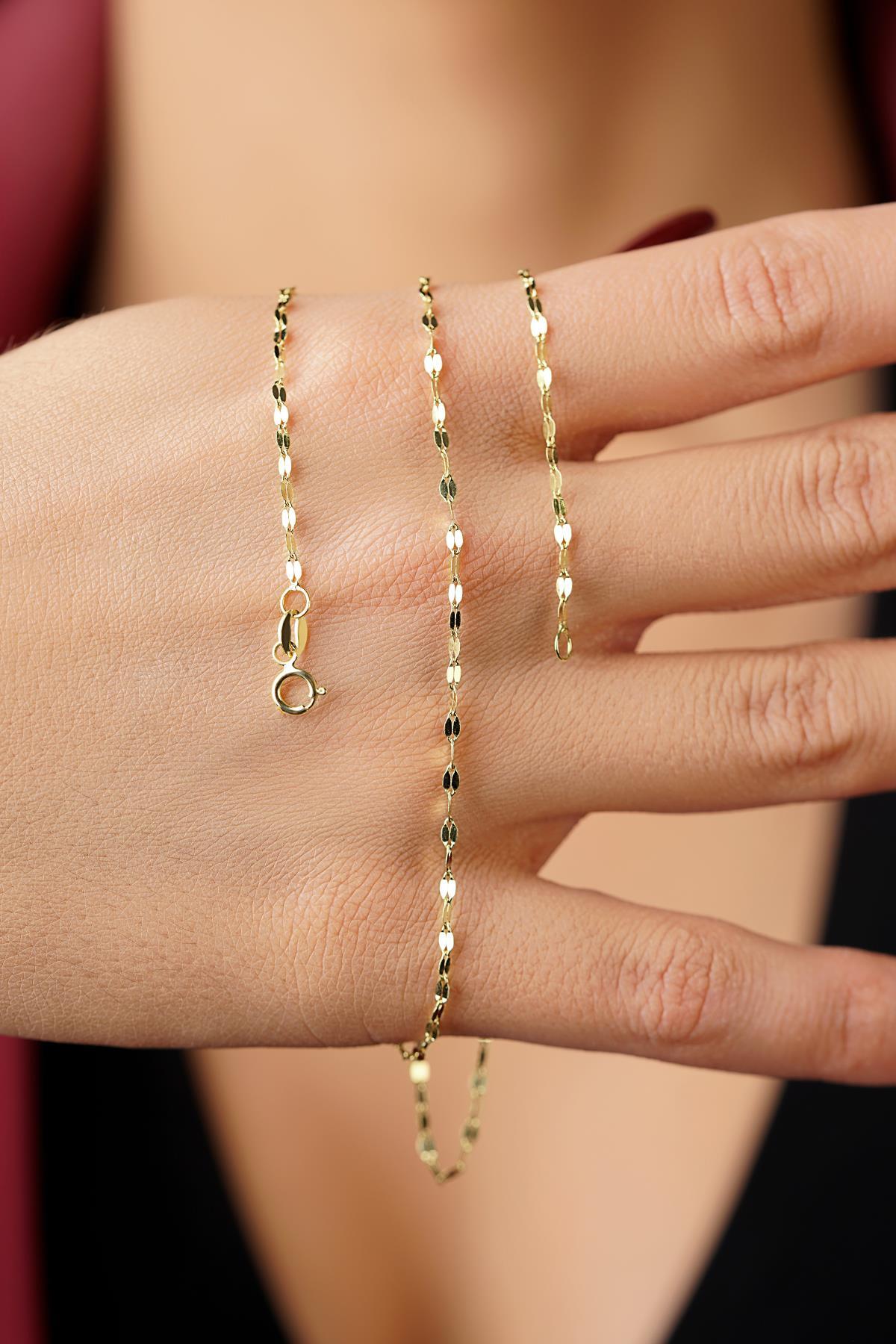 14 Ayar Altın Aynalı Valentino Zincir Kolye