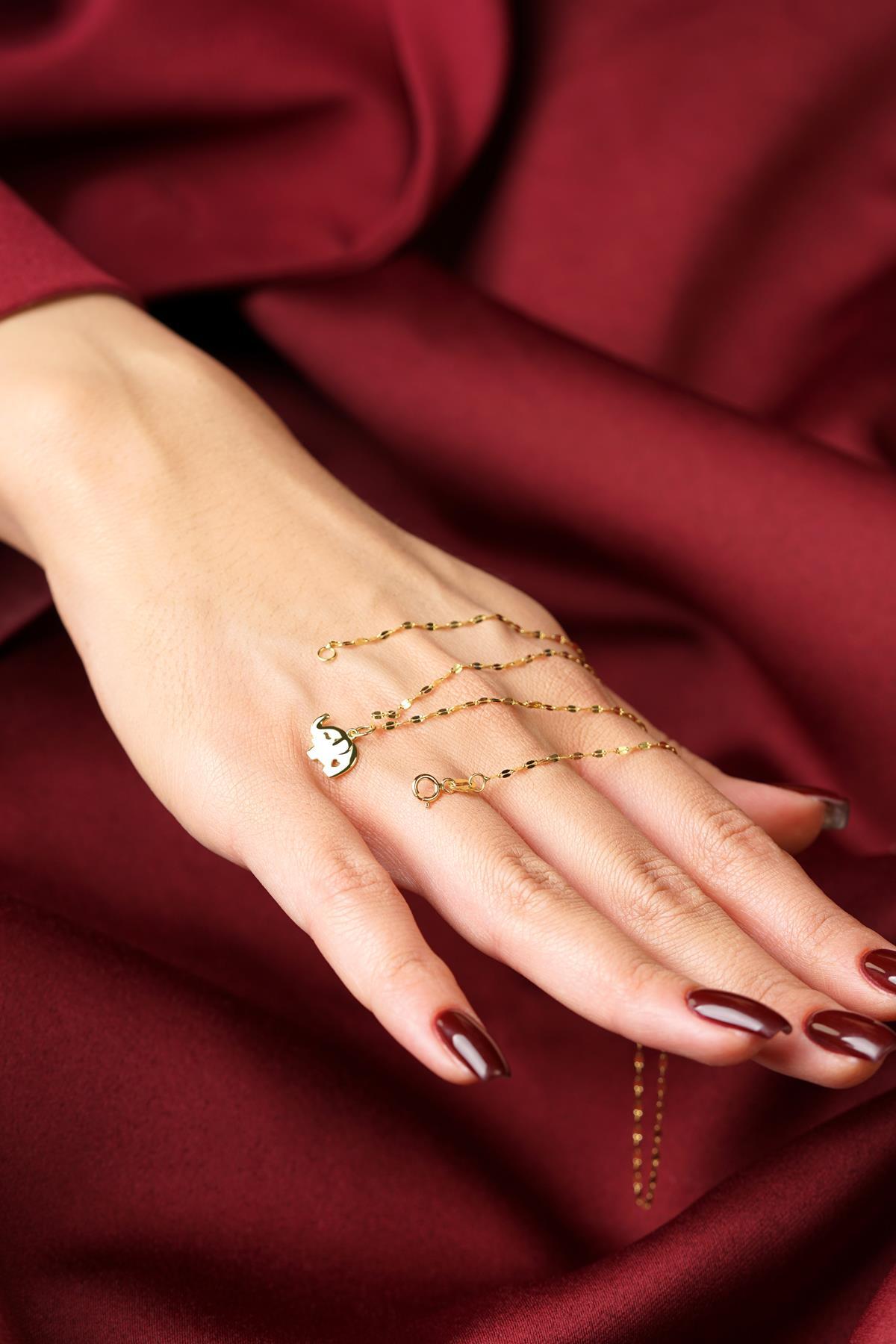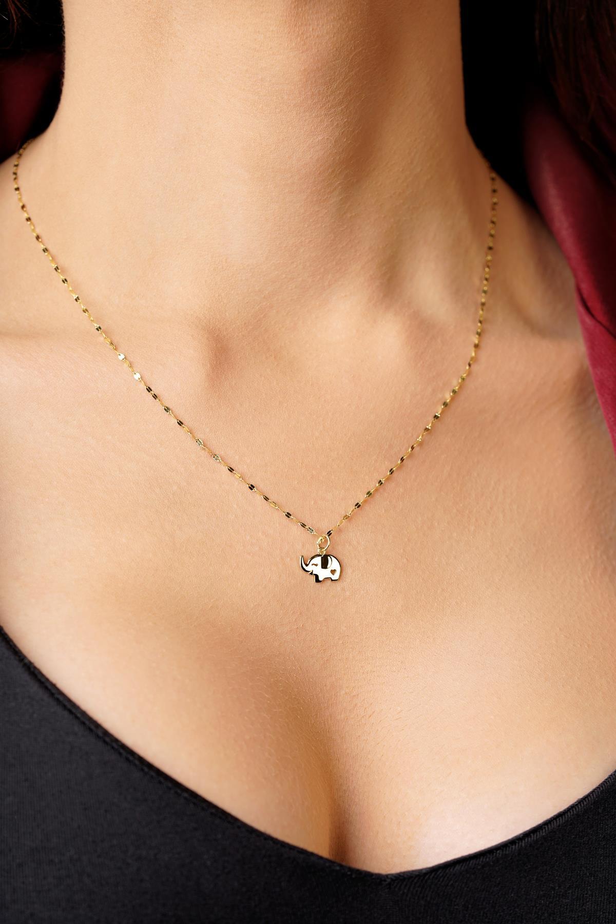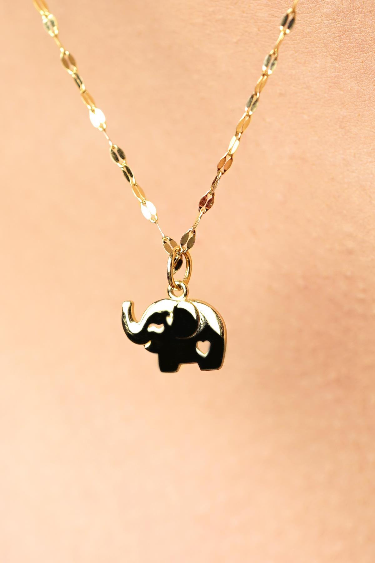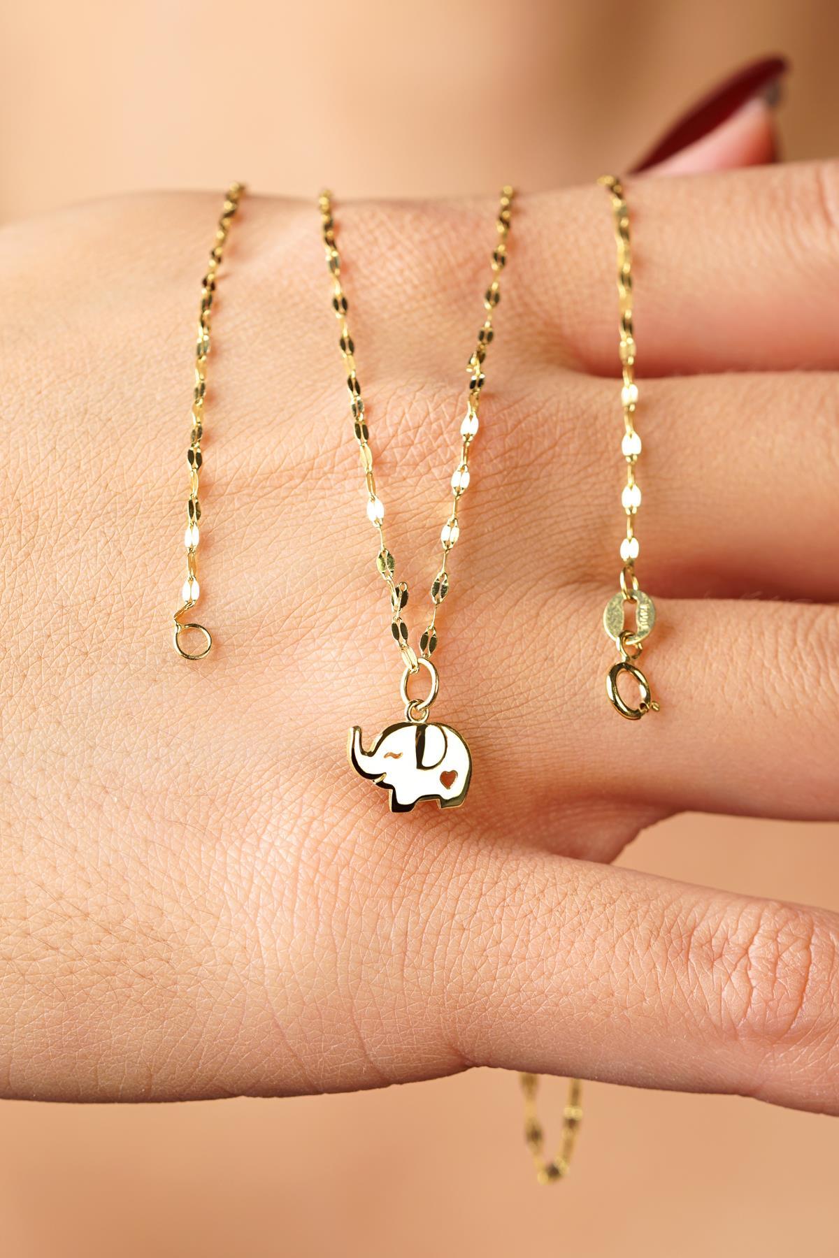 14 Ayar Altın Fil Detaylı Aynalı Zincir Kolye