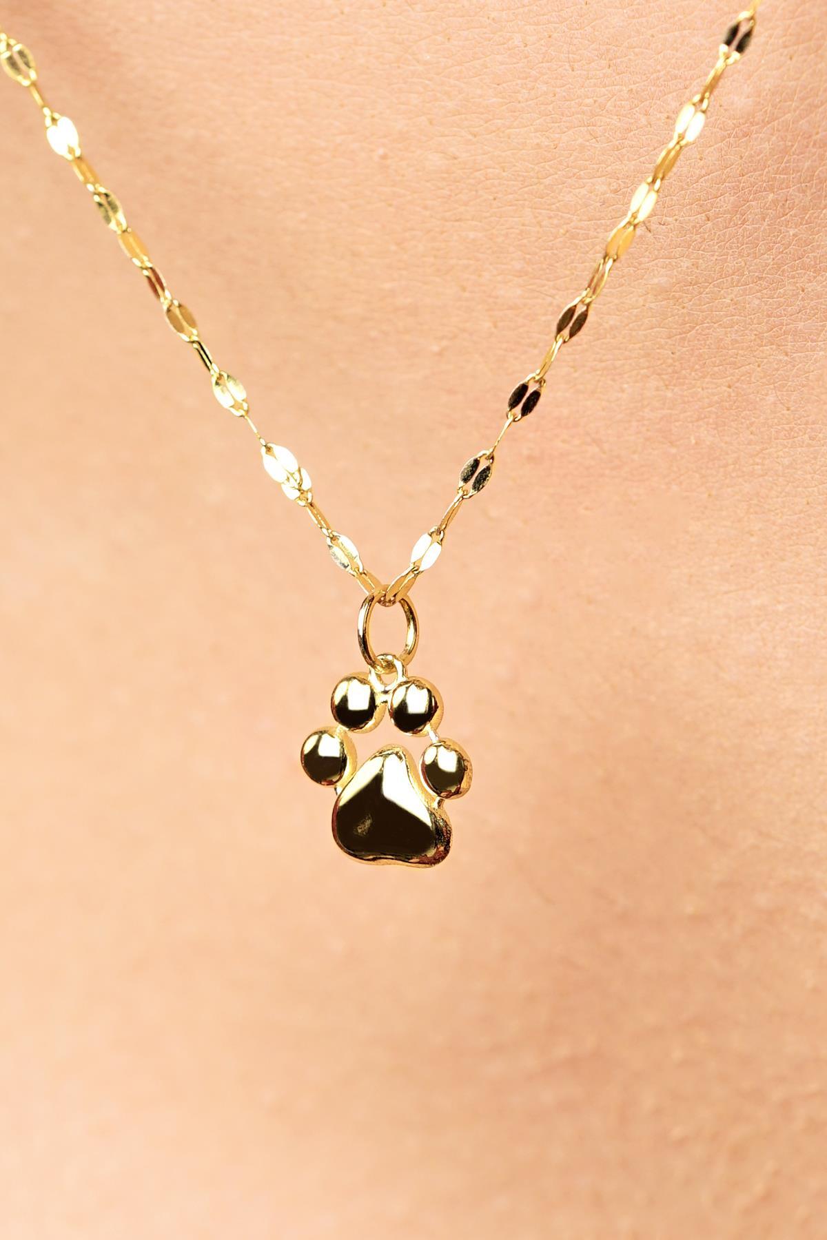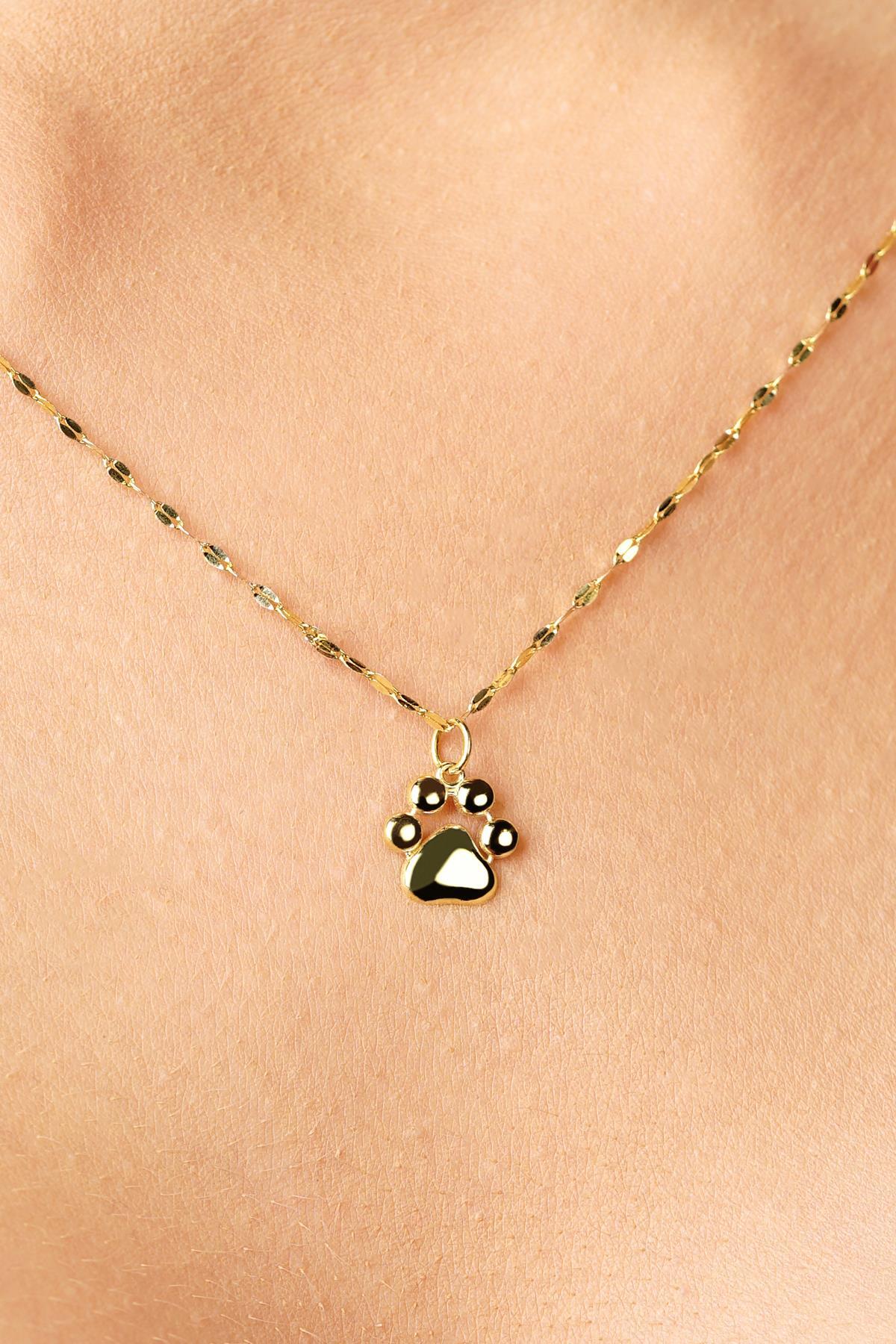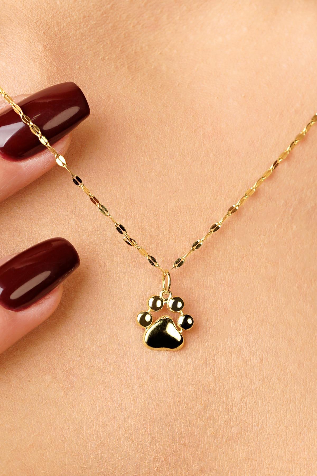 14 Ayar Altın Kedi Köpek Pati Detaylı Aynalı Zincir Kolye