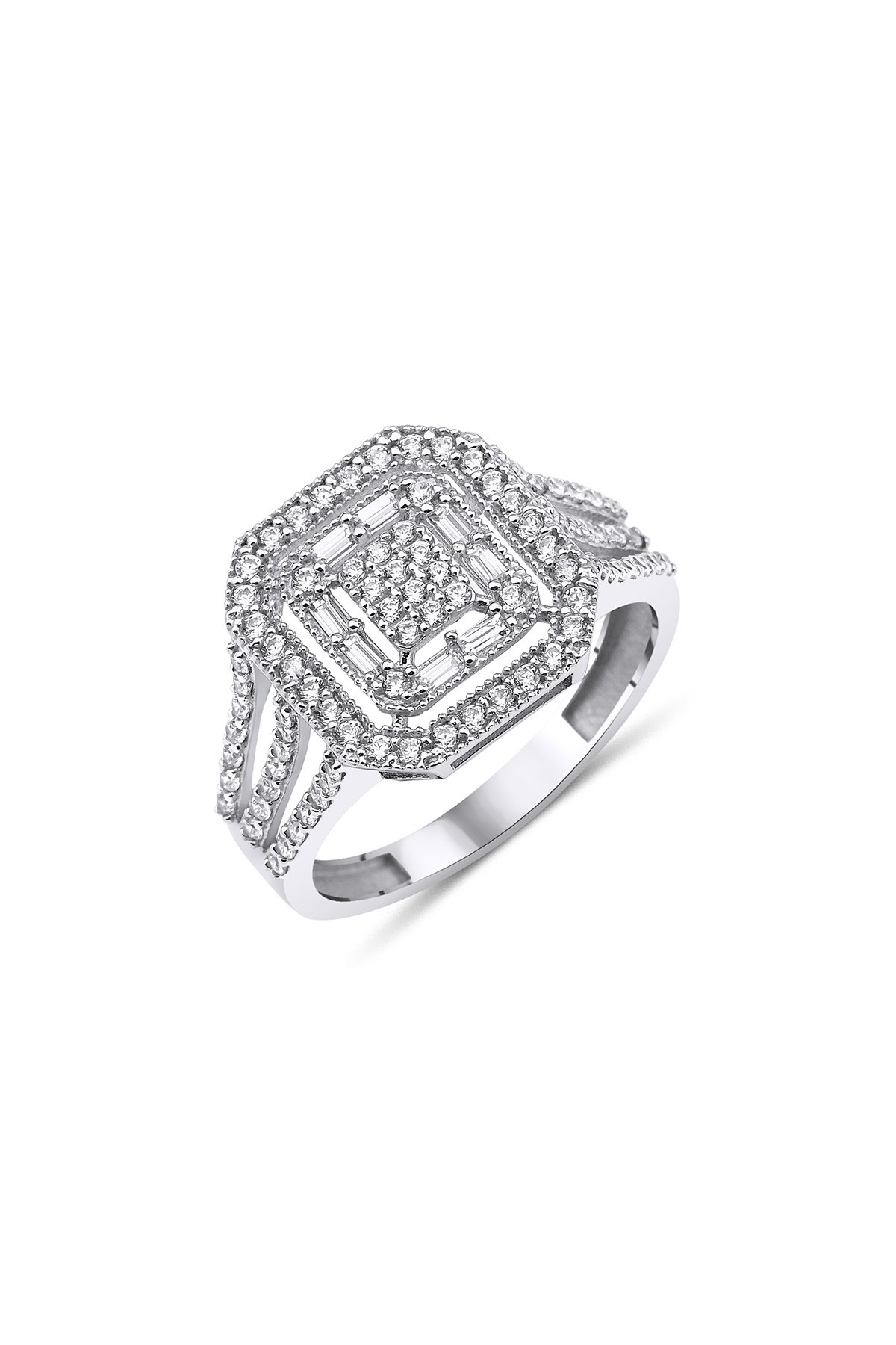 14 Ayar Altın Baget Taşlı Yüzük Beyaz