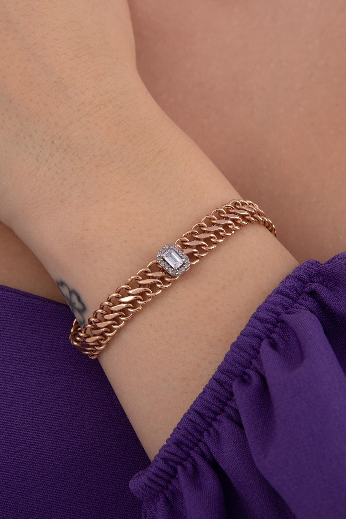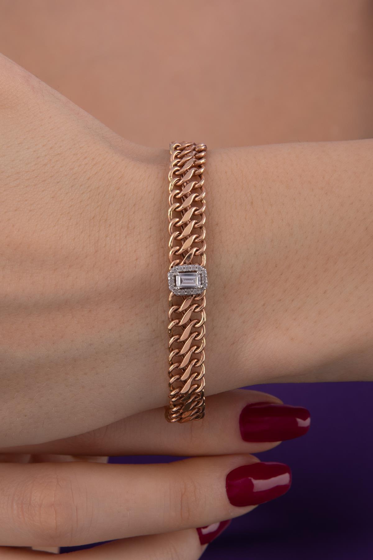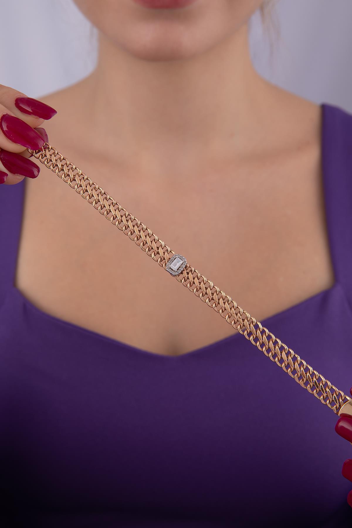 14 Ayar Altın Baget Taş Detaylı Otto Bileklik
