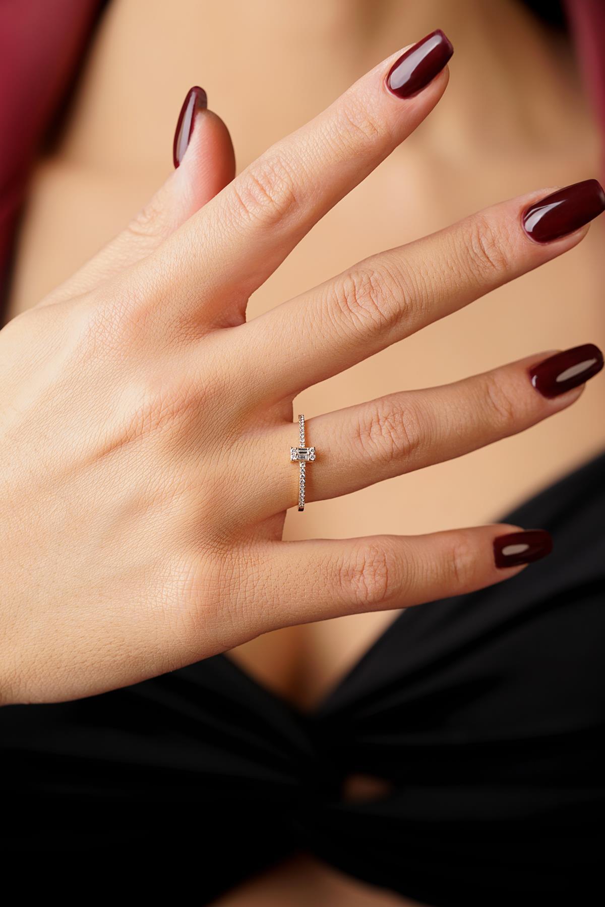 14 Ayar Altın Baget Taşlı Yüzük Beyaz