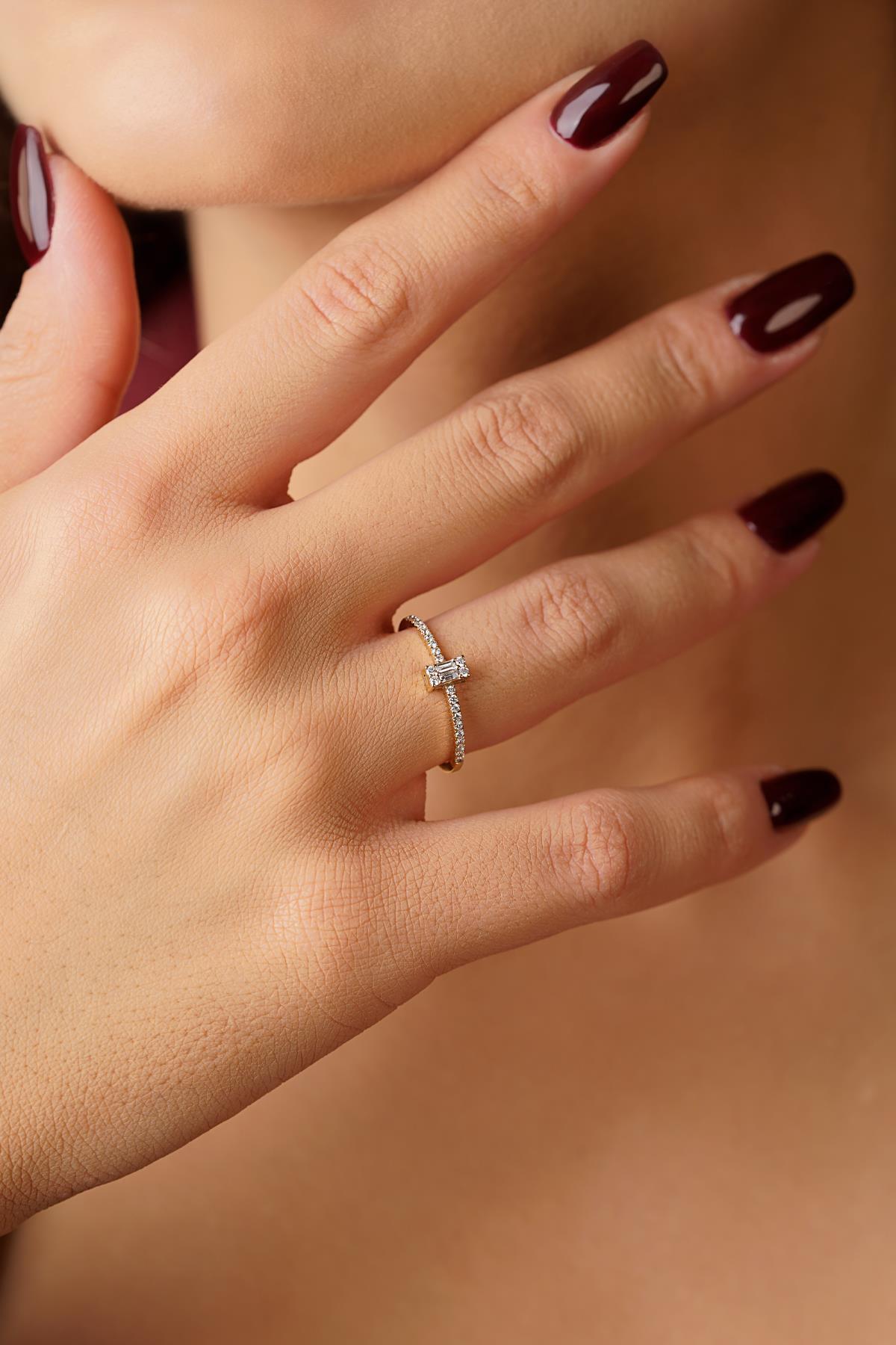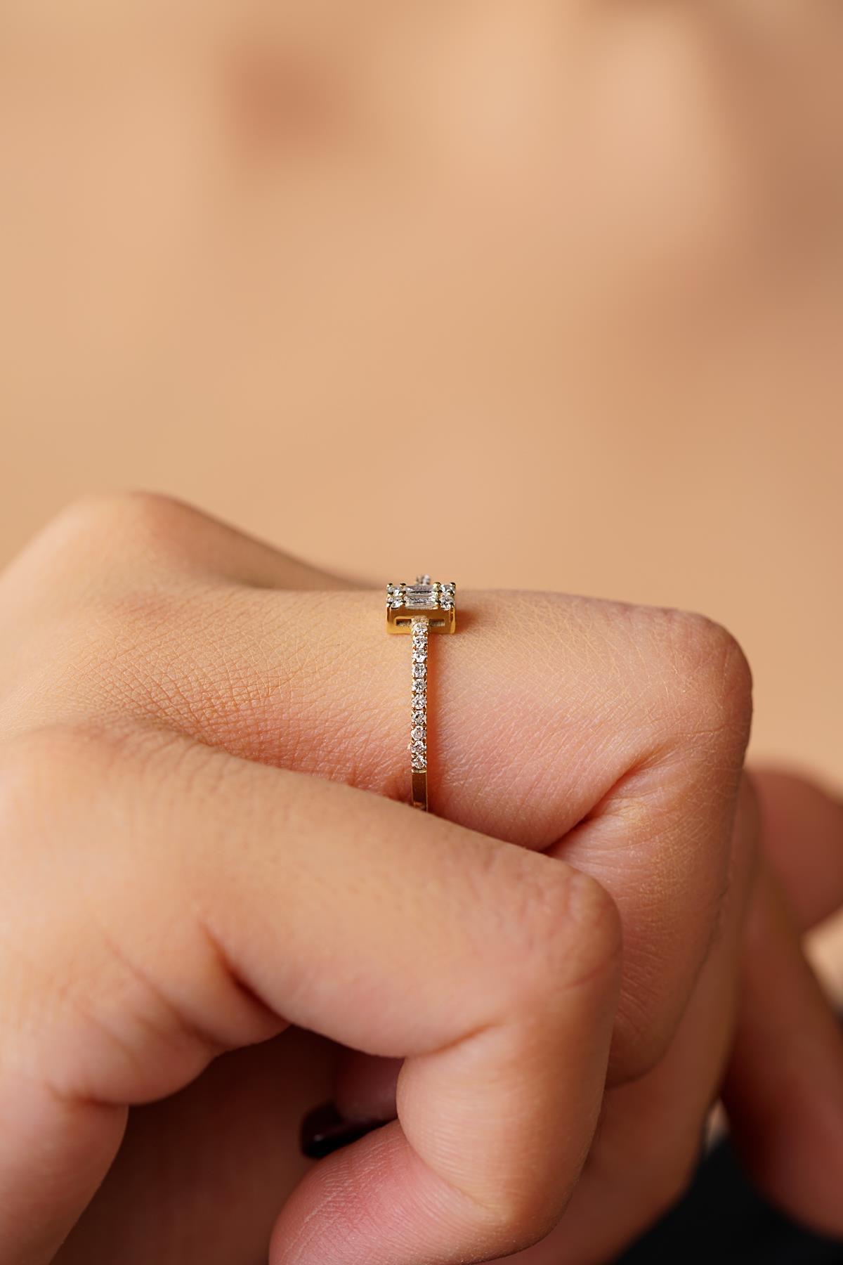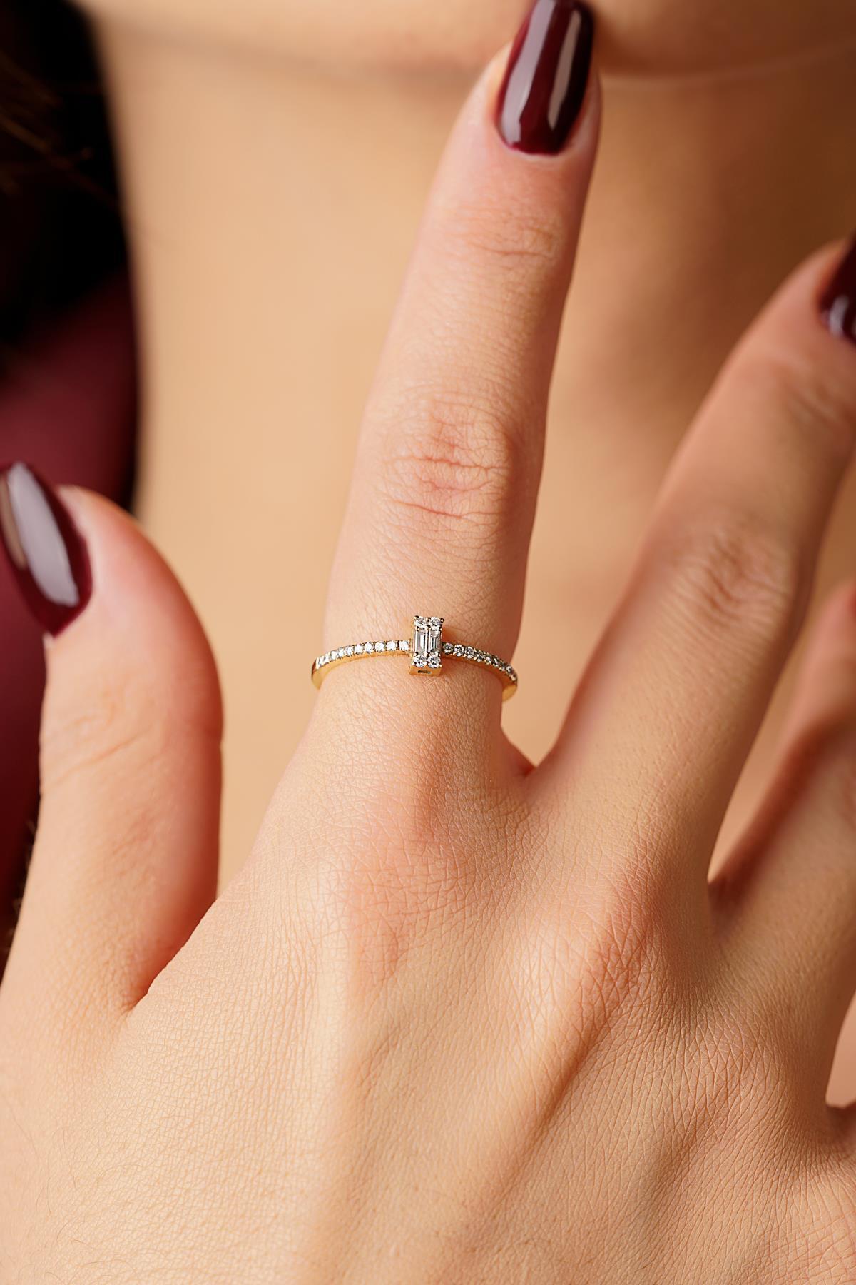 14 Ayar Altın Baget Kare Sıralı Yüzük 2