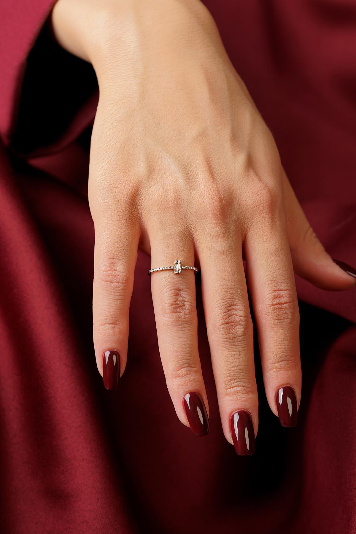 14 Ayar Altın Baget Taşlı Yüzük