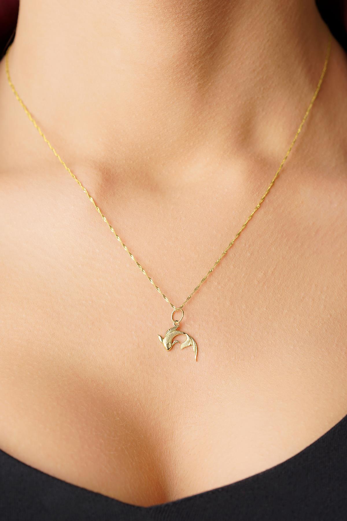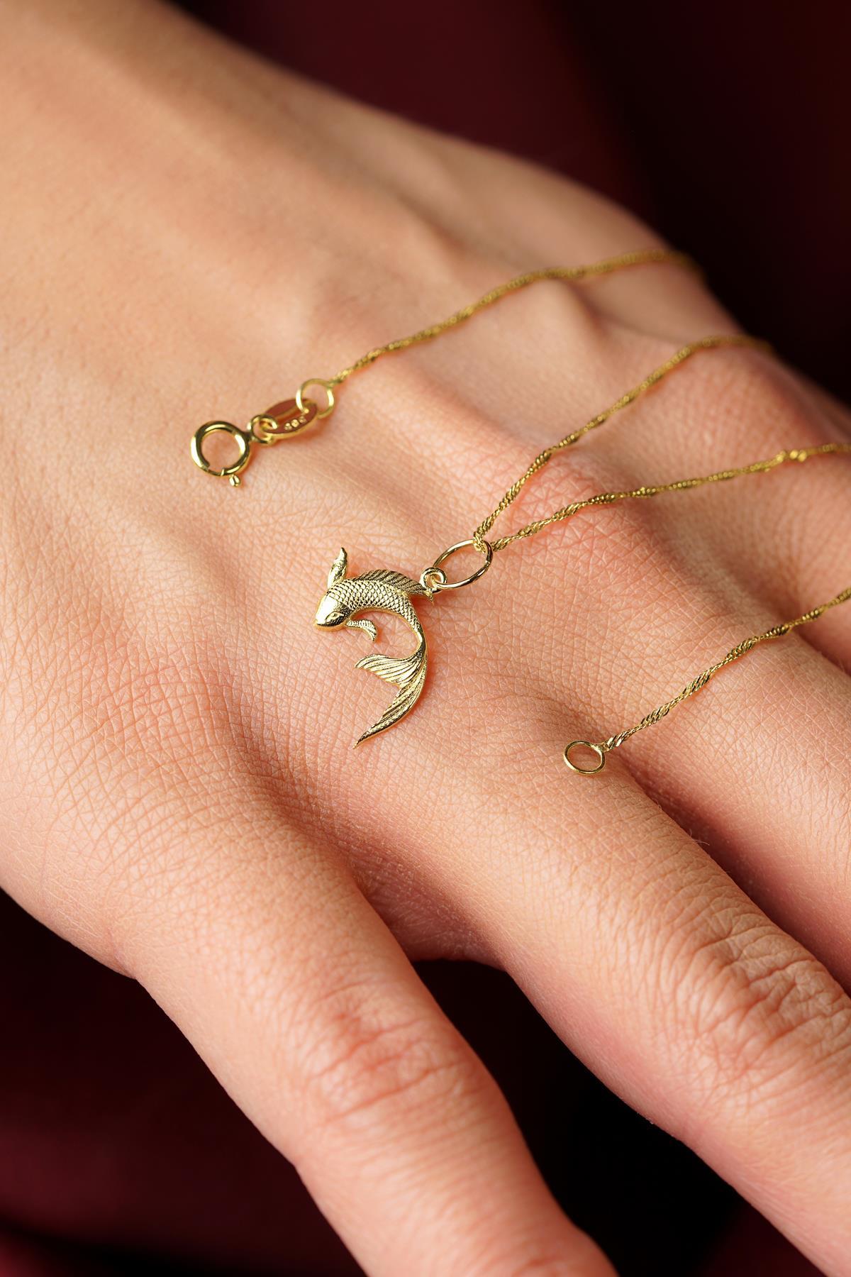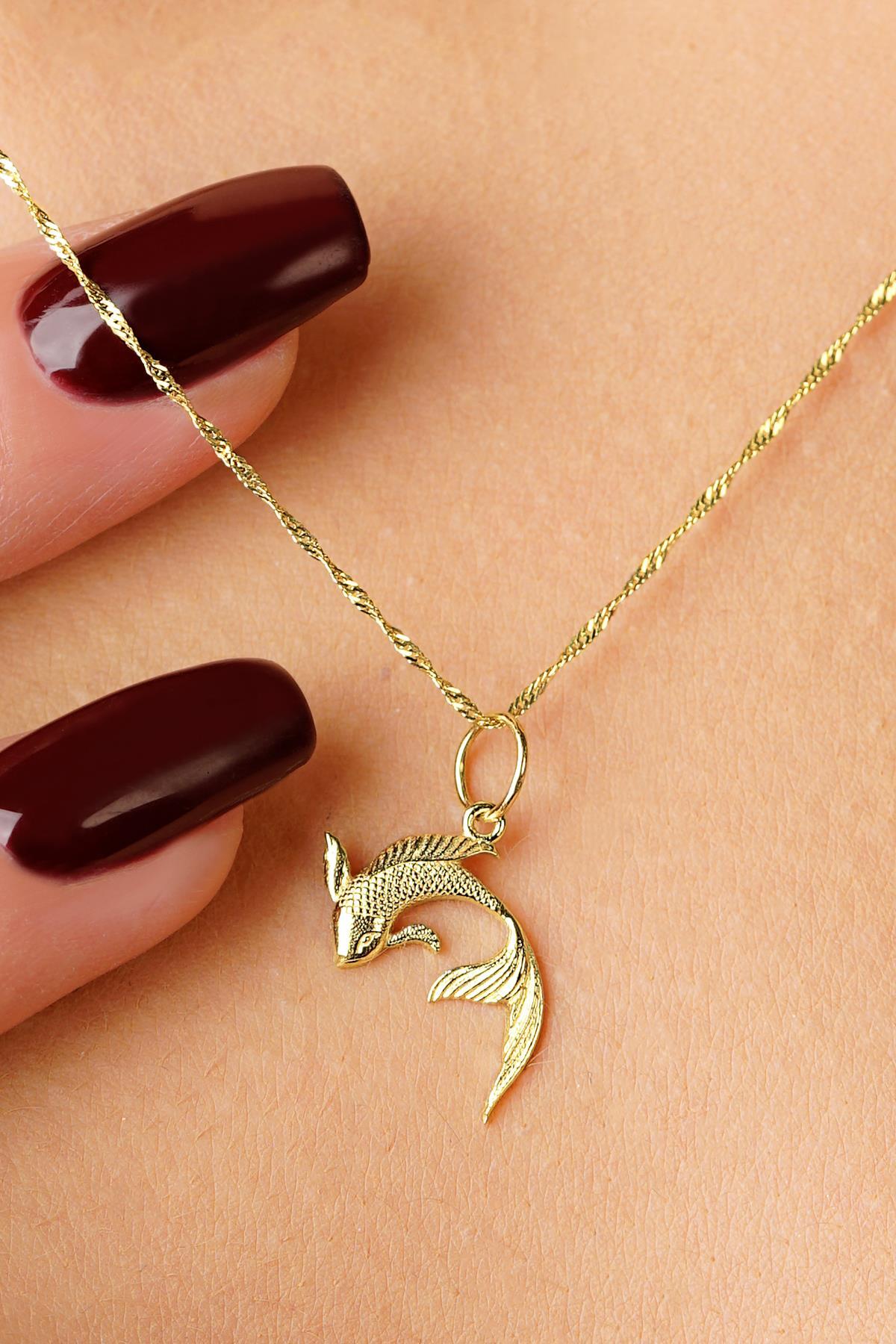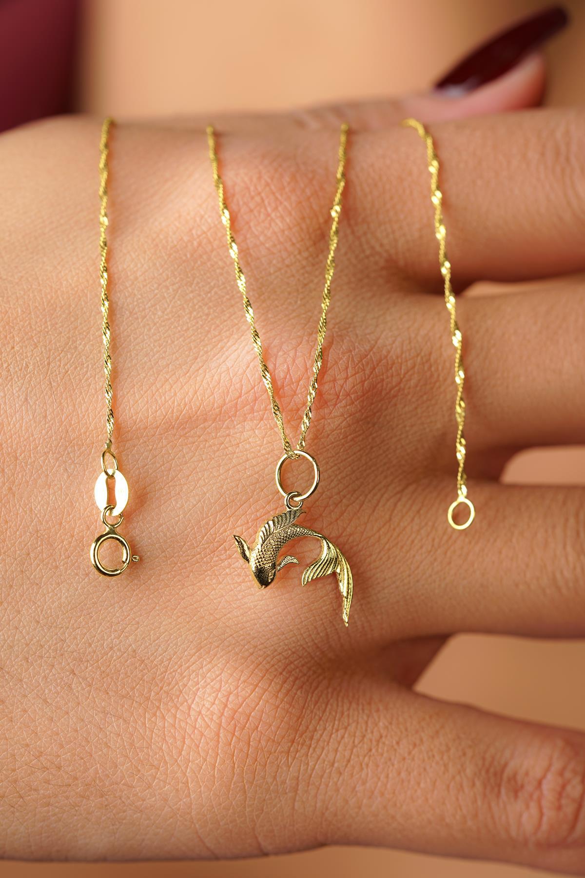 14 Ayar Altın Koi Balığı Singapur Zincir Kolye